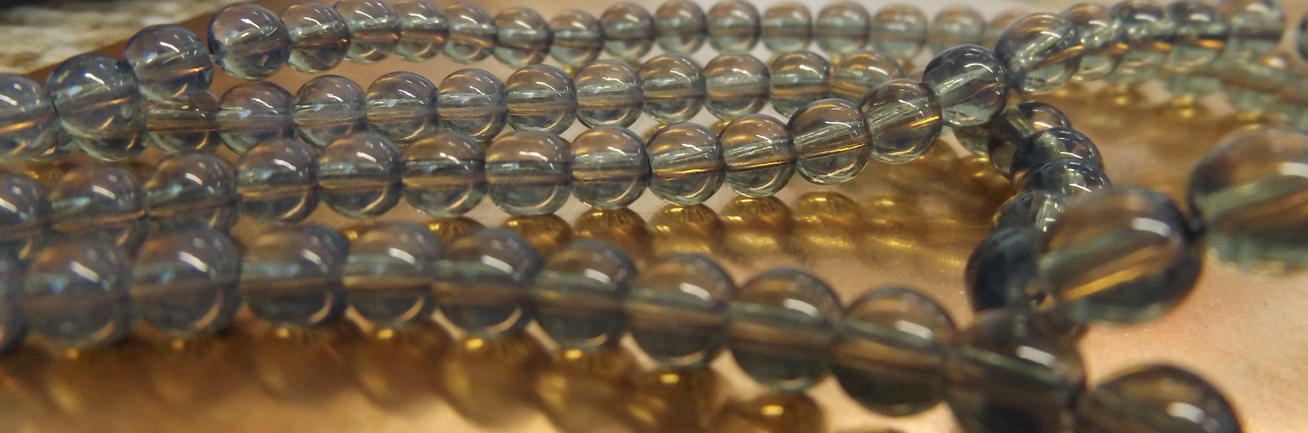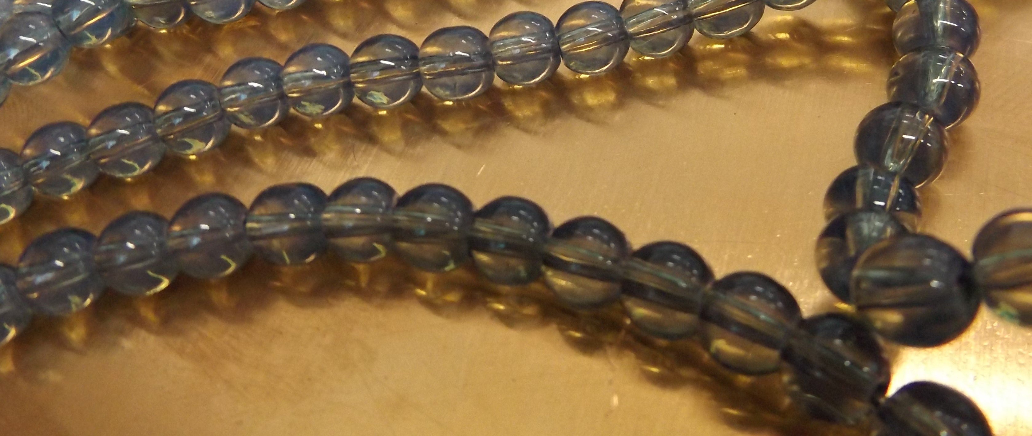 Glass Beads (Opalite with Misty Blue / Grey 6mm) (approx 50 beads per 13" Strand)