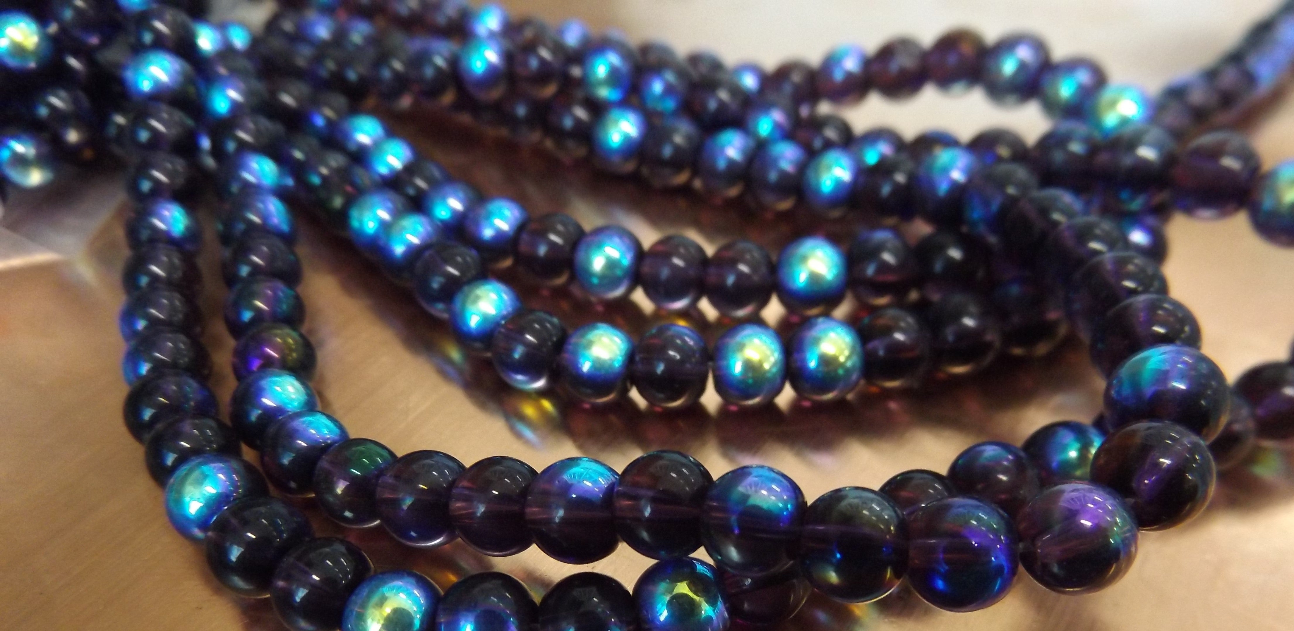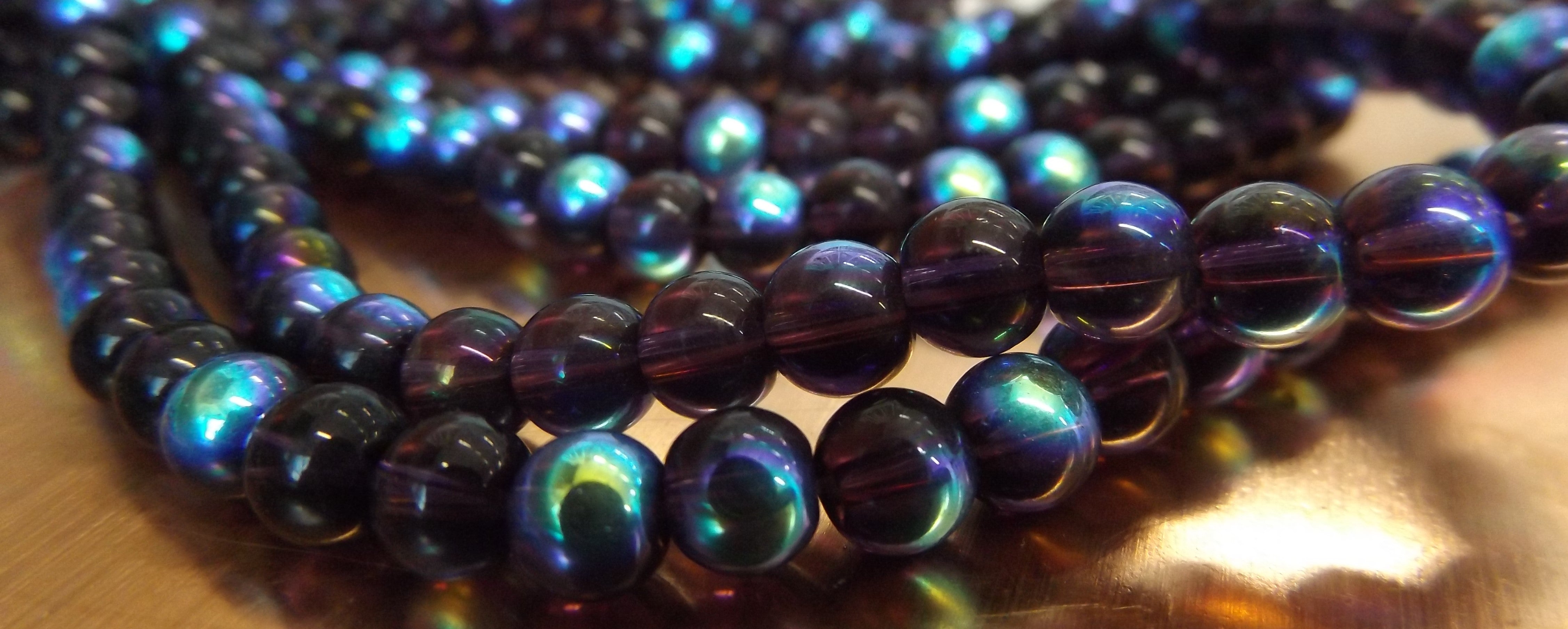 Glass Beads (Purple with AB Half Coat- 6mm) (approx 50 beads per 13" Strand)