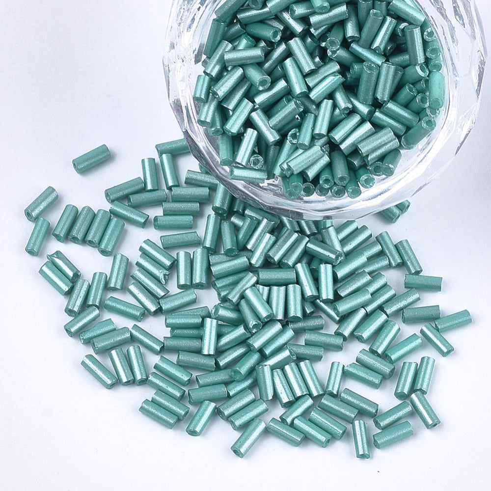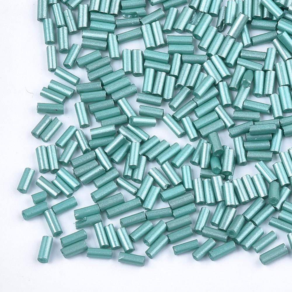 Glass Bugle Beads, Round Hole, Opaque Dark Cyan, 3~5x1.5~2mm, Hole: 0.8mm (approx 15gr)