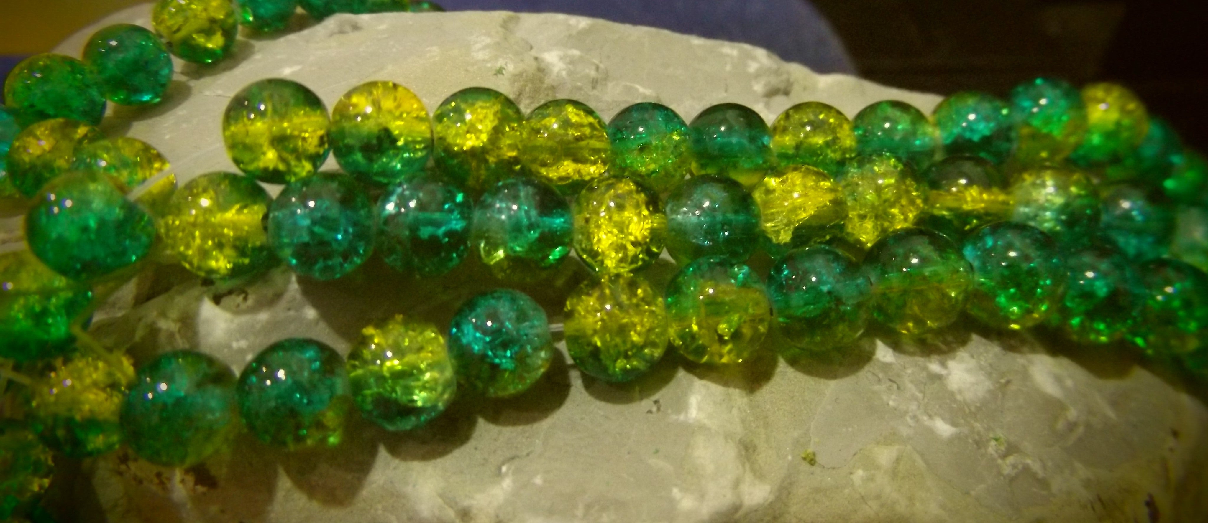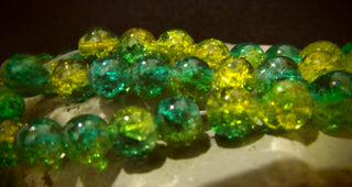 Glass (Crackle) Rounds *Two Tone Teal/Yellow Rounds. 8mm 16" Strand (approx 54 Beads)