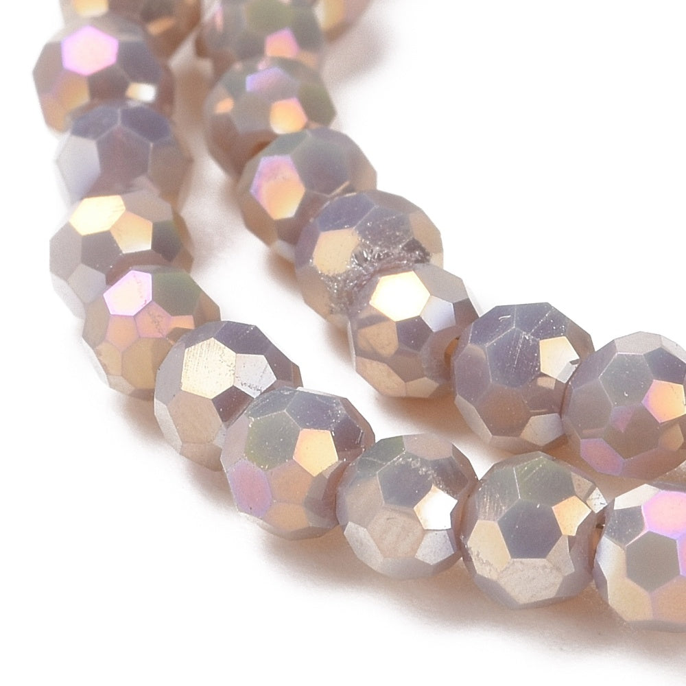 Glass Faceted 4mm ROUND Beads. *Full Rainbow Plated Electroplate. Rosy Brown. *approx 100 Beads.
