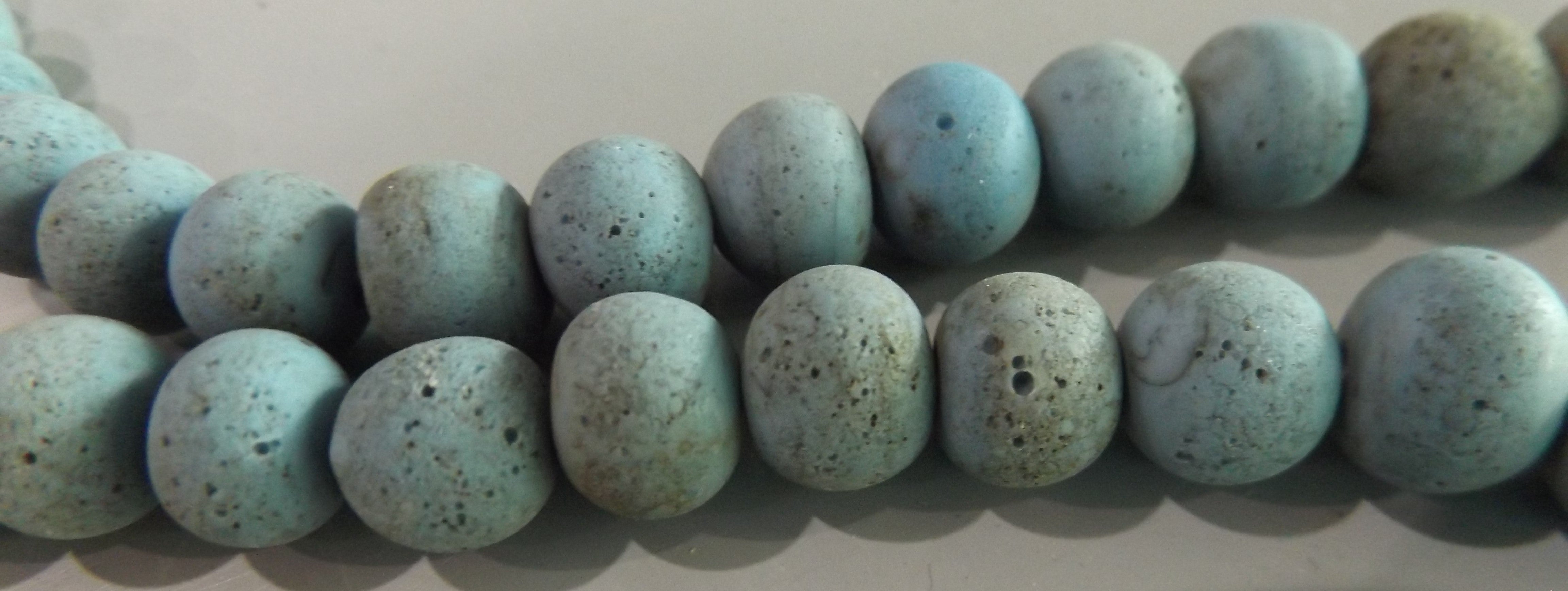 Glass Indonesian / Bali Beads. 8 x 10mm Round. Organic Mid Blue *Priced per 10 Beads.