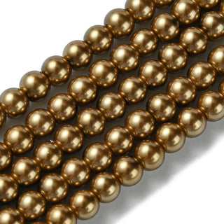 Glass Pearls (Round 6mm. Grade A) Dark Goldenrod. Approx 70 Beads.