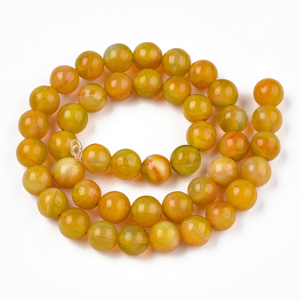 Glass Round Beads Strands, Imitation Look Stones, Round, Goldenrod, 8~8.5x8mm, Hole: 1mm. Approx 50 Beads.