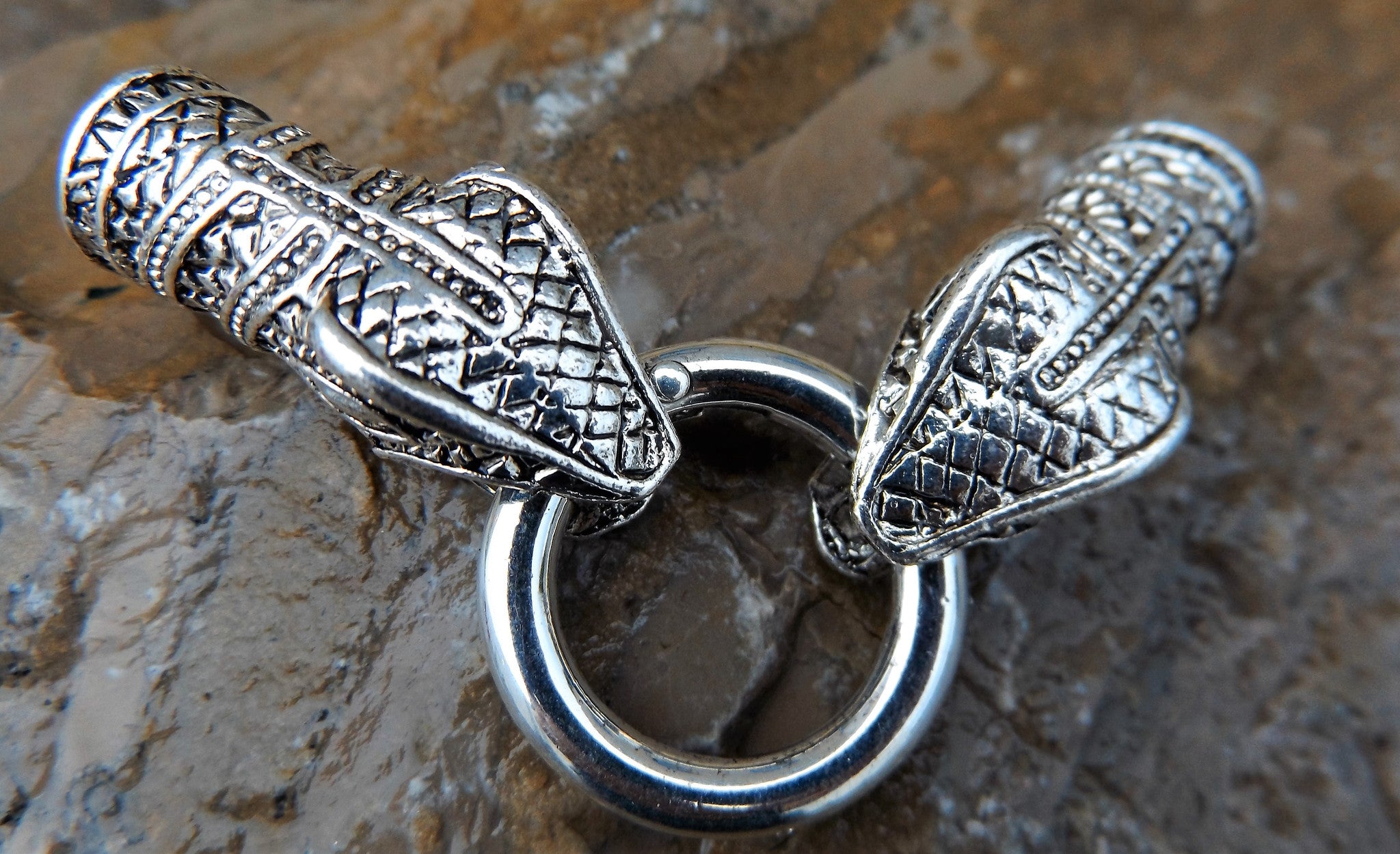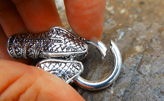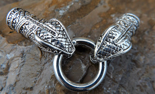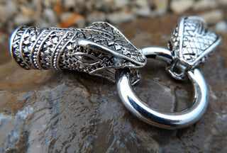 Glue In Snake Head Closures (Spring Lock Clasp) 75x25x14mm. Snake End Hole is 10mm. (Sold Individually)