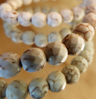 Howlite (8mm Rounds) *Faceted Off White with Brown Veins 15.5" strand