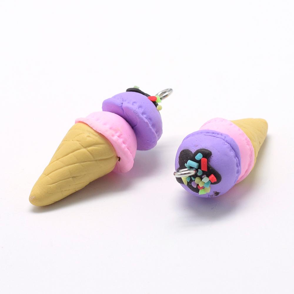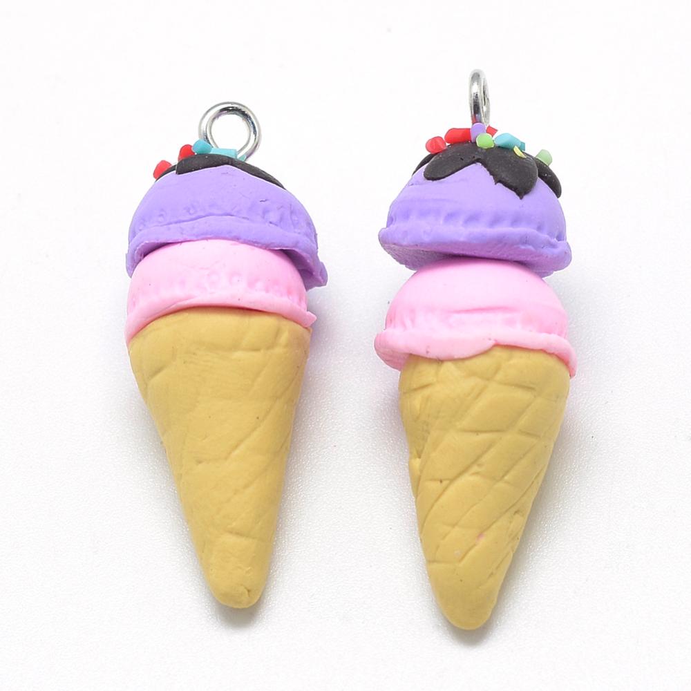 Ice Cream Cone Charm (Pink and Purple). 37~40x14~16mm, Hole: 2mm. *Polymer Clay