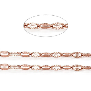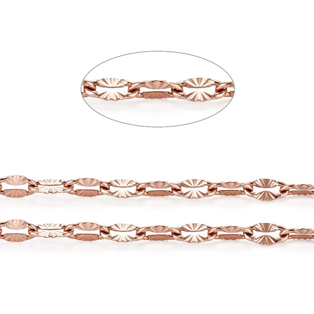 Ion Plating(IP) 304 Stainless Steel Textured Dapped Chains, Cable Chains, Soldered, Flat Oval, Rose Gold, 4.2x2x0.2mm *Sold by the Foot