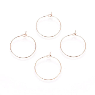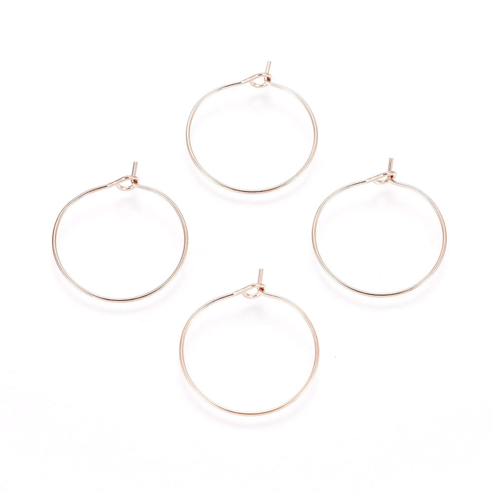 Iron Plating(IP) 316L Surgical Stainless Steel Hoop Earring Findings, Wine Glass Charms Findings, Rose Gold, 20x0.7mm, 21 Gauge(Packed 10)