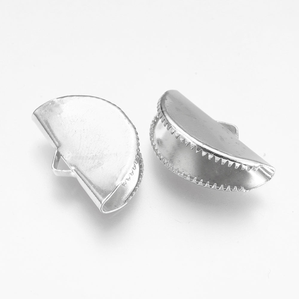 Iron Ribbon Crimp Ends, Fan, Platinum, 12.5x20mm, Hole: 1.5x2.5mm. Packed 10 Pieces