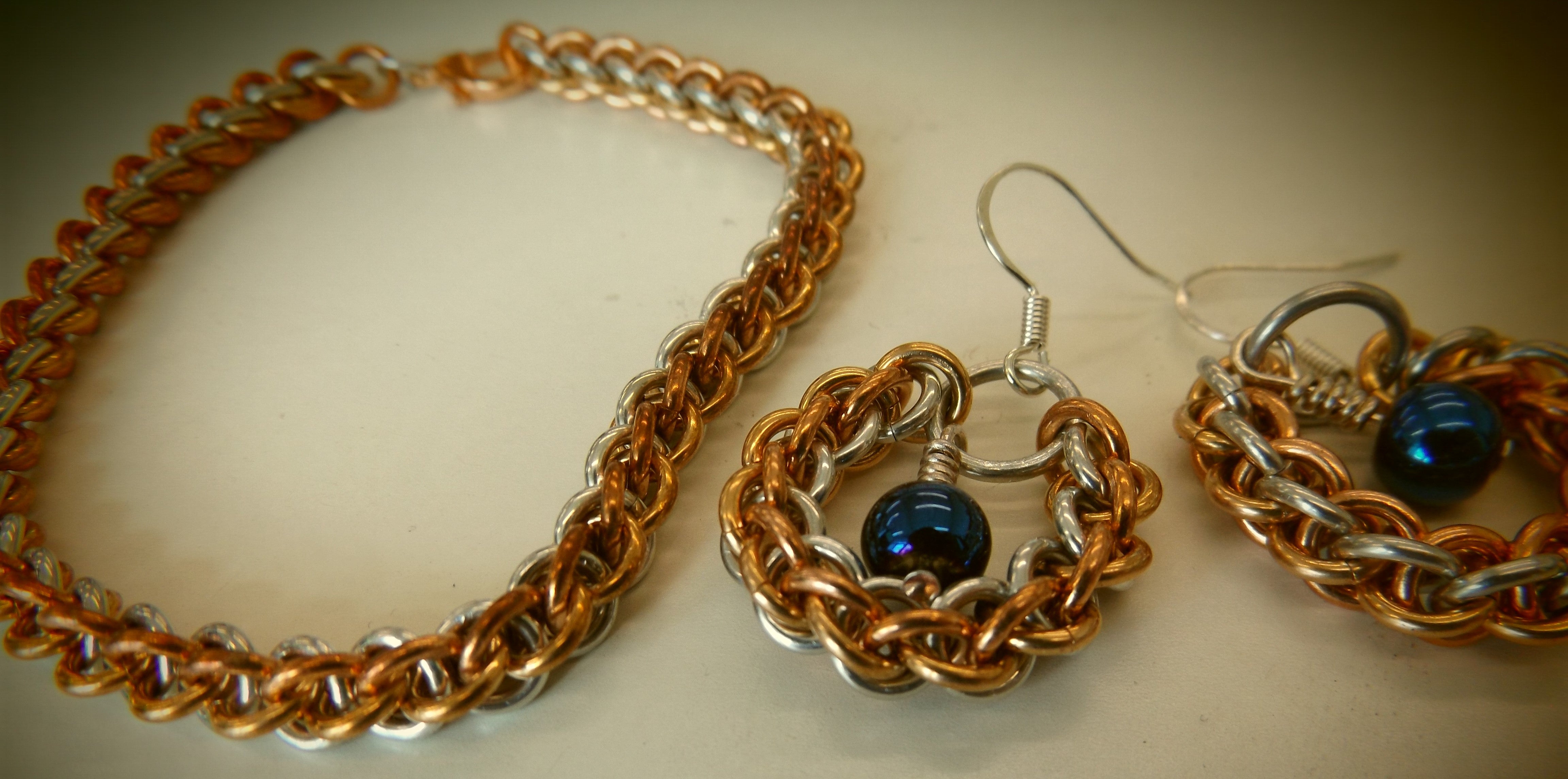 Complete Kit includes all necessary Bright or Anodized Aluminum rings, Bronze and Copper Jump Rings. components and full color instructions to complete a bracelet and bonus earrings.