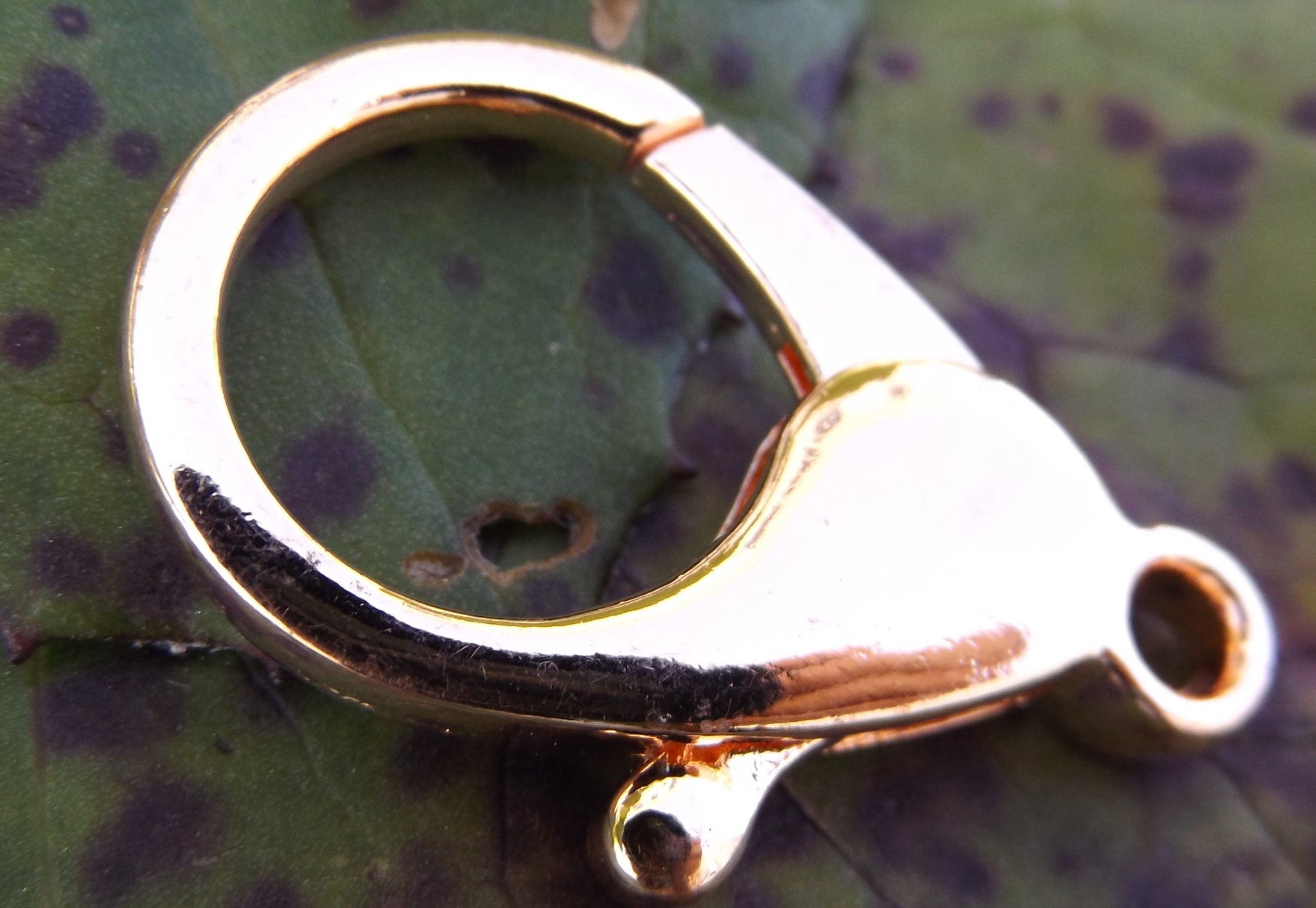 Base Metal Lobster Clasp in a "rose gold" color.  Similar to a bright copper, but with a rose hue.   This clasp is quite large.  Could be used as a statement piece!   Sold Individually.