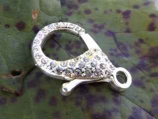 Stunning Lobster Clasp with encrusted crystals.  A statement clasp on its own!  Sold individually.  Bright Silvertone with clear crystals.  30 x 20mm.