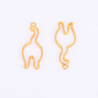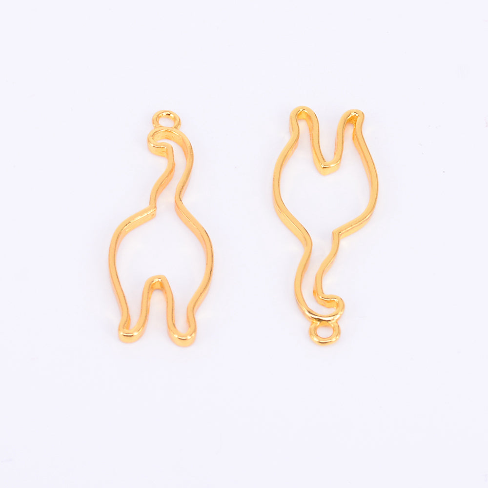 Long-Lasting Plated Alloy Open Back Bezel Pendants, For DIY UV Resin, Epoxy Resin, Pressed Flower Jewelry, Dinosaur/ Cat Butt, Golden, 40x14.5x2mm, Hole: 2.5mm (Packed 4)