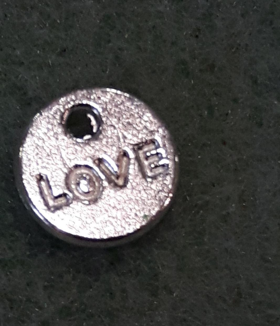 LOVE Charm (Antique Silver Color)- (9mm diam- 1mm thick. Hole 1.5mm). *Packed 20 Charms.