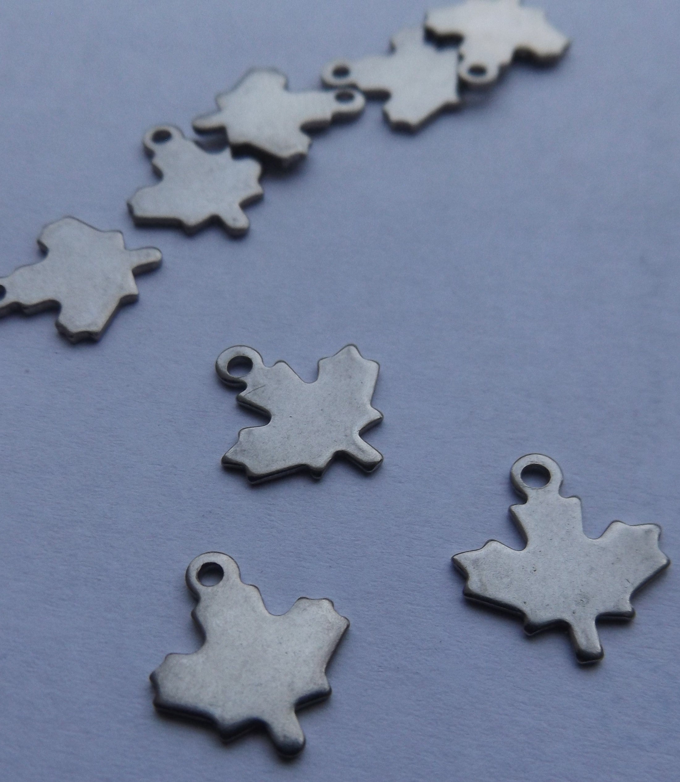 Maple Leaf Charm (Stainless Steel) *Packed 10. 13 x 11.5mm (Hole 1mm)