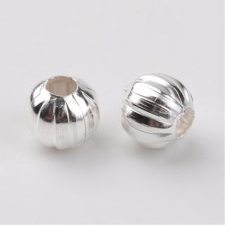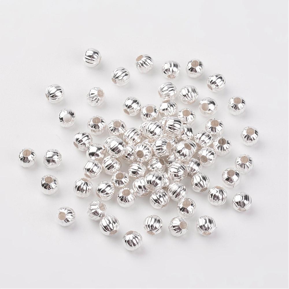 Melon Spacer Beads. Iron Corrugated Beads, Silver Color Plated, Round, 6mm in diameter, Hole: 2mm. (100 Beads)