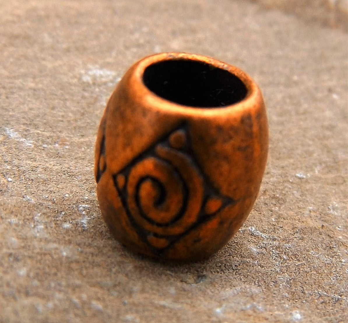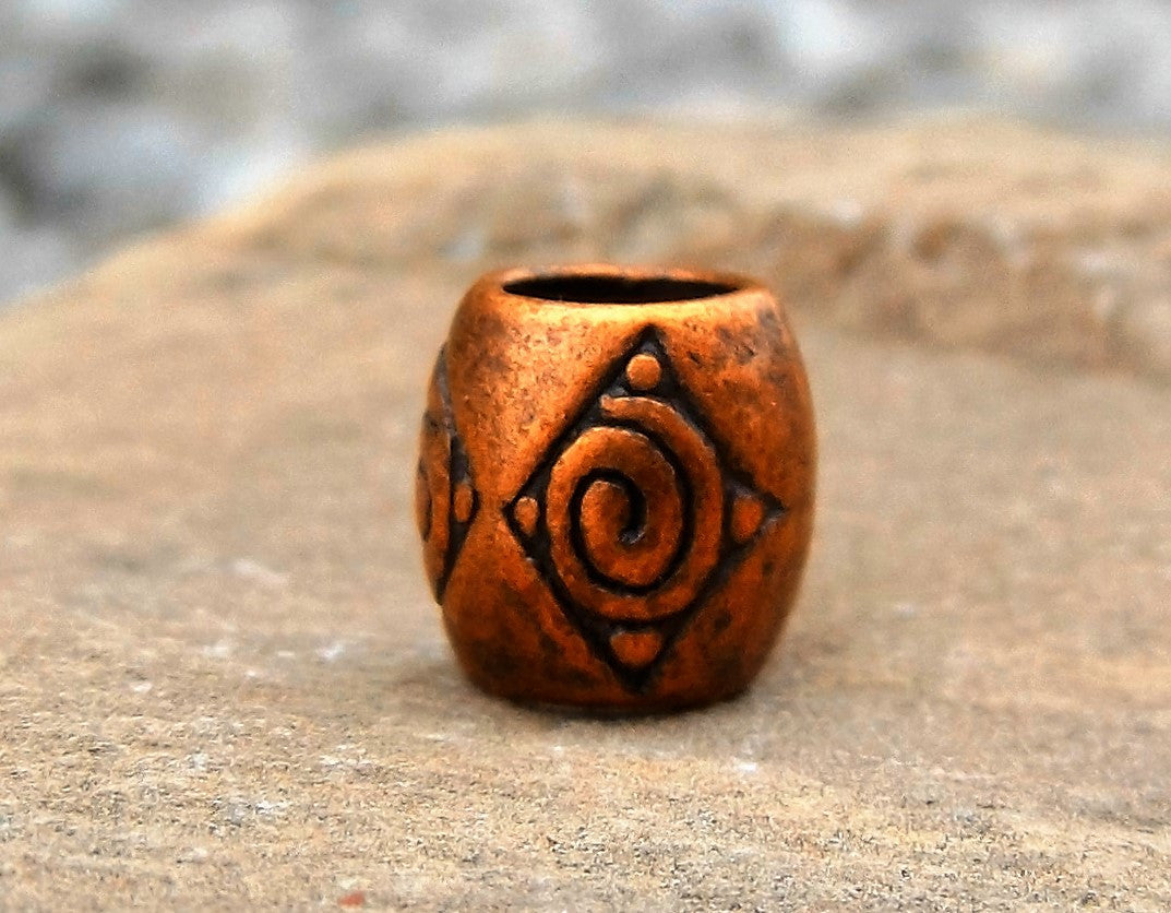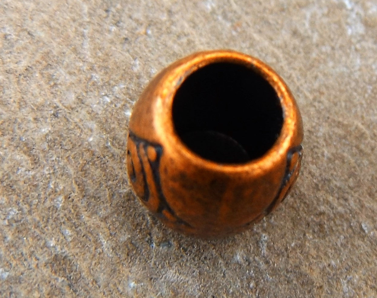 Metal Bead (Antique Copper Color) Barrel Style with Design. Larger 5mm hole (10 x 8mm) Packed 20 Beads
