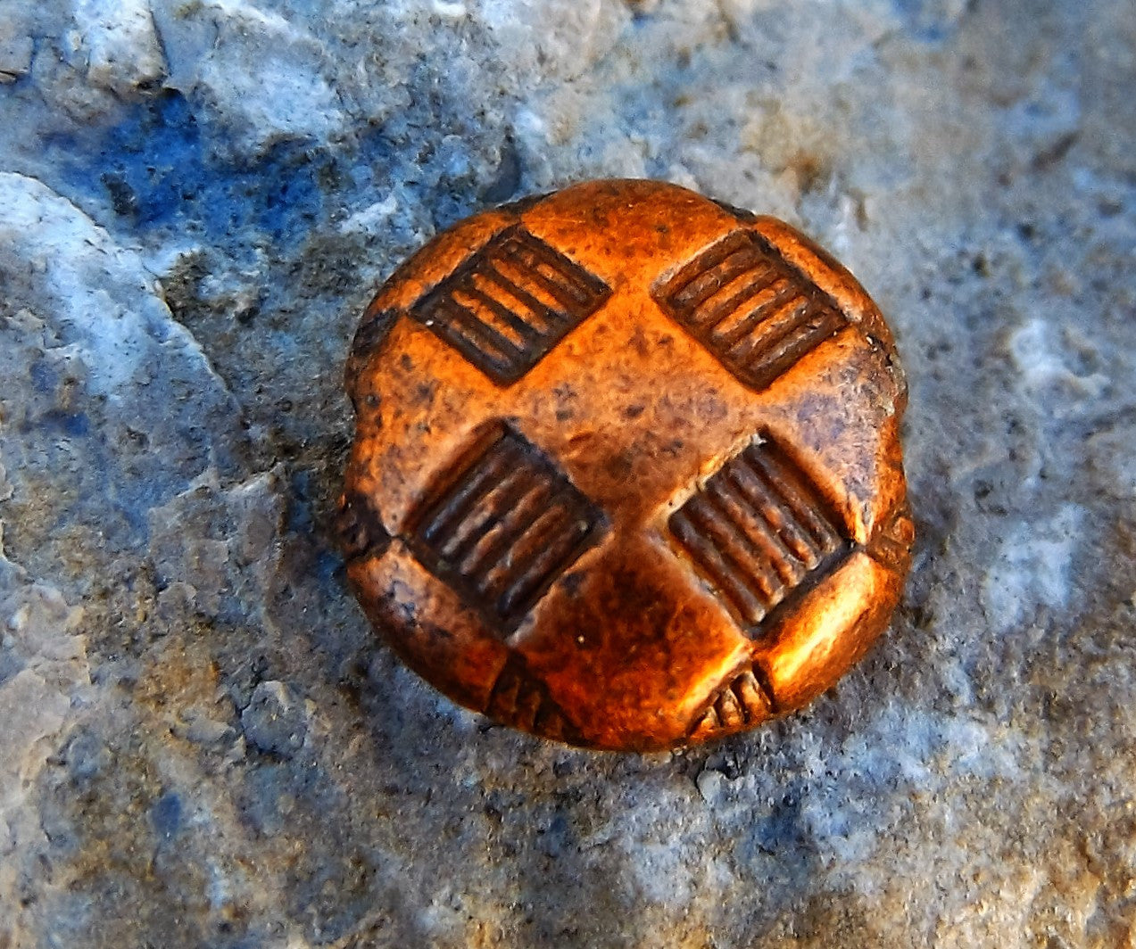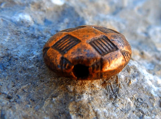 Metal Bead (Copper Color). Quilt Pattern Lentel Style. 10 x 4mm thick. (Packed 10 Beads)