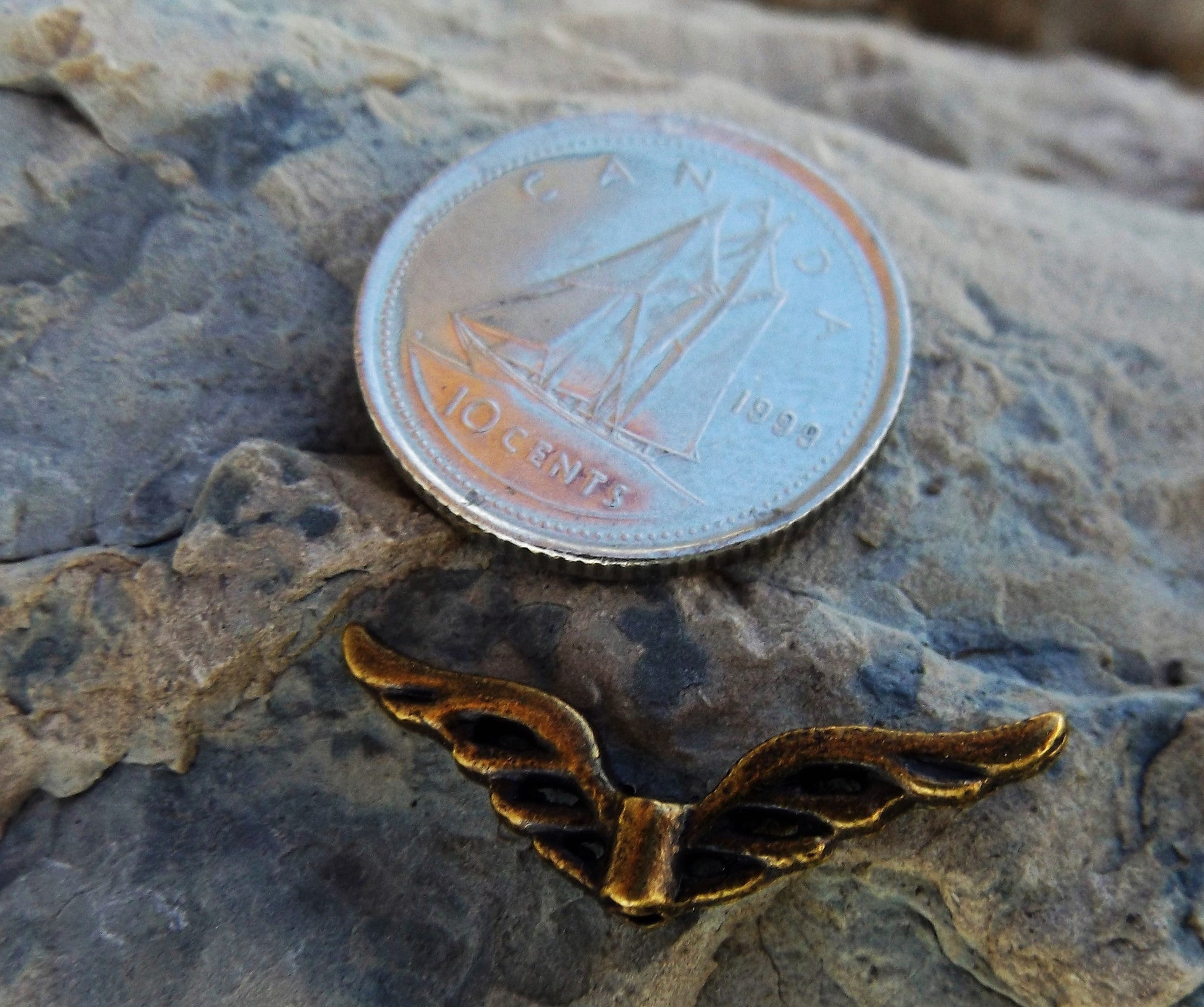 Metal Bead -(Wing) (WNGG03) Antique Bronze Color Wing. 23 mm x 5 mm. See drop down for options