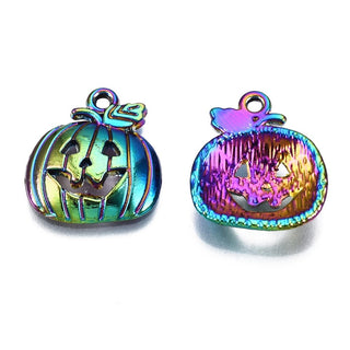 Metal Halloween, Pumpkin, Rainbow Color, 18.5x16x3.5mm, Hole: 1.6mm. Sold Individually