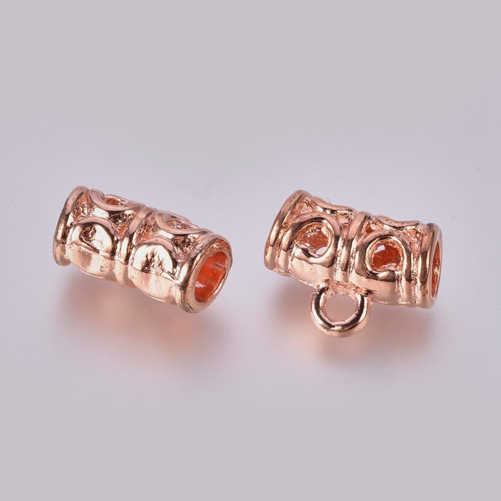 Metal Hanger (Tube) Bails, Loop Bails, Rose Gold Color, 9.5x11mm, Hole: 2mm *Packed 10