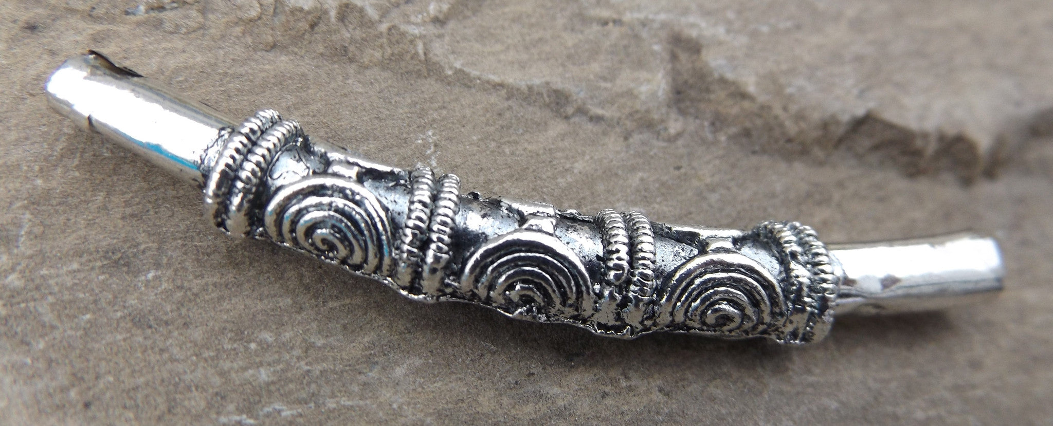 Metal Ornate Tube Spacer *Antique Silver Color (packed 2) 60 x 8mm.