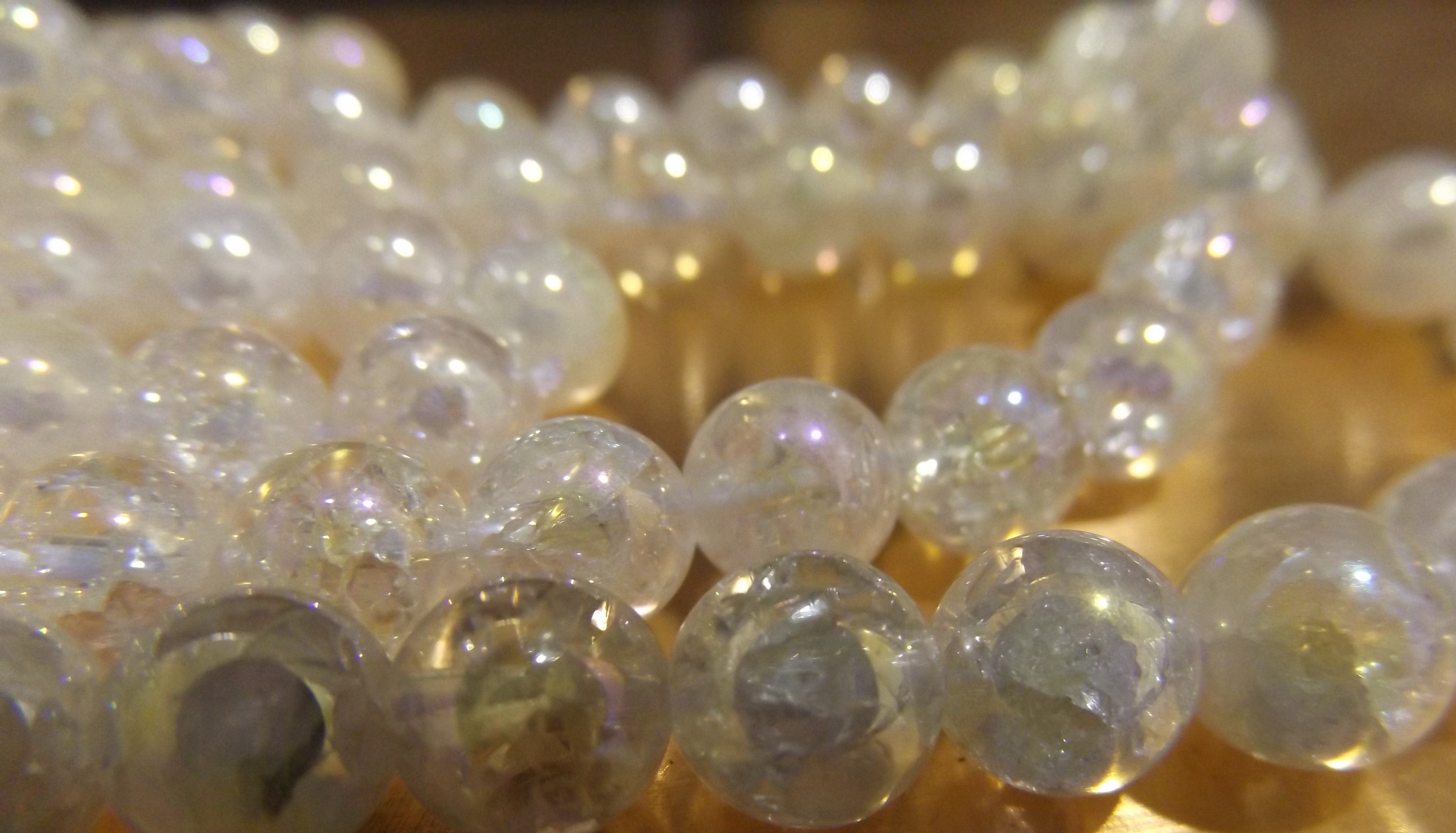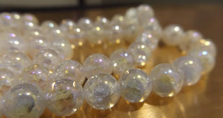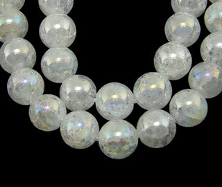 Natural Crackle Quartz Crystal ( 9mm Rounds). 16" Strand (approx 44 Beads)