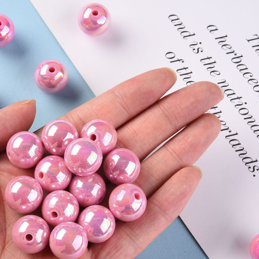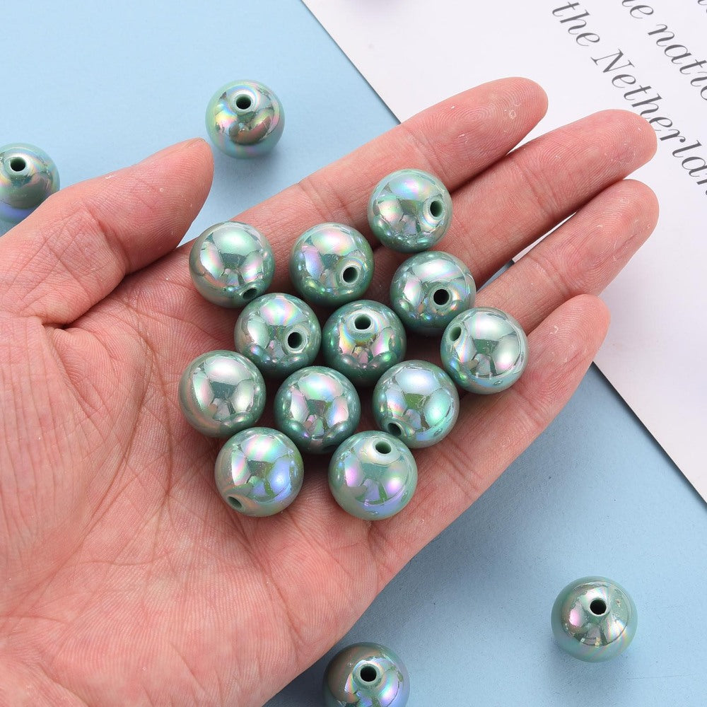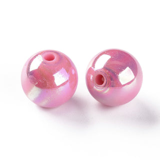 Opaque Acrylic Beads, AB Color Plated, Round, 15mm, Hole: 2.8mm. (Packe 20 Beads). *See Color Options