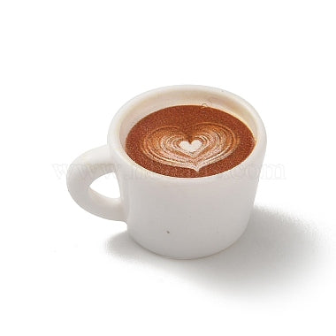 Opaque Resin. Coffee Cup Charm, White, Heart, 17x22x13.5mm, Hole: 4.5x3mm. Sold Individually