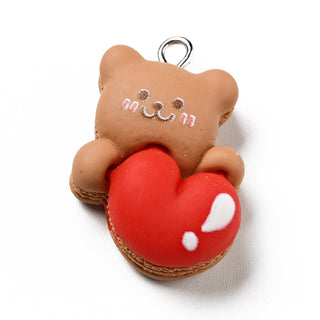 Opaque Resin Pendants, Bear with Heart Charm, with Platinum Tone Iron Loops, Red, 27x18.5x9mm, Hole: 2x2.5mm. Sold Individually.