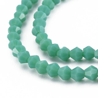 Opaque Solid Color Glass Beads Strands, Faceted, Bicone, Sea Green, 4.5x4mm, Hole: 1mm, about 85 pcs/strand