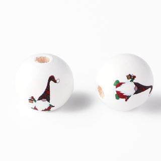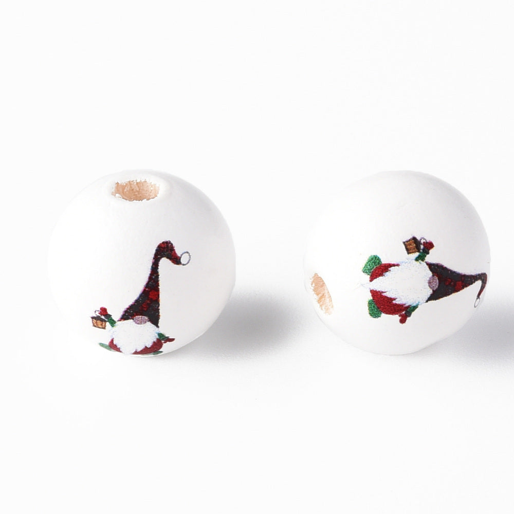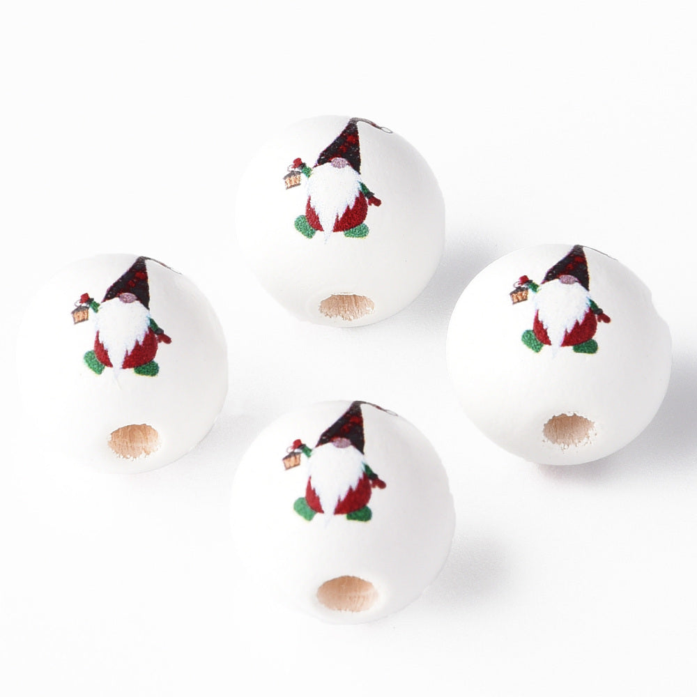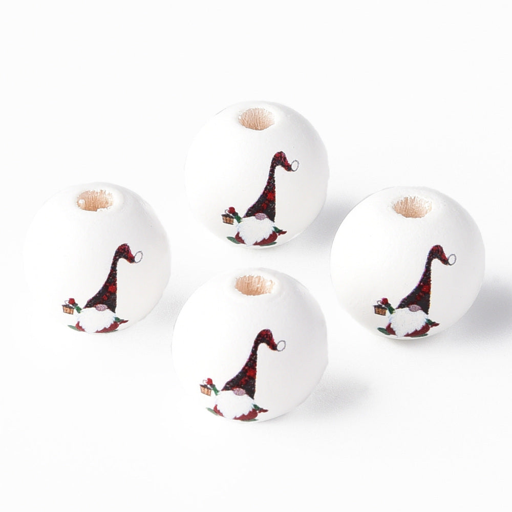 Painted Natural Wood Round Beads, Father Christmas, Santa Claus Gnome. Red, 16x15mm, Hole: 4mm. Packed 10 Beads.