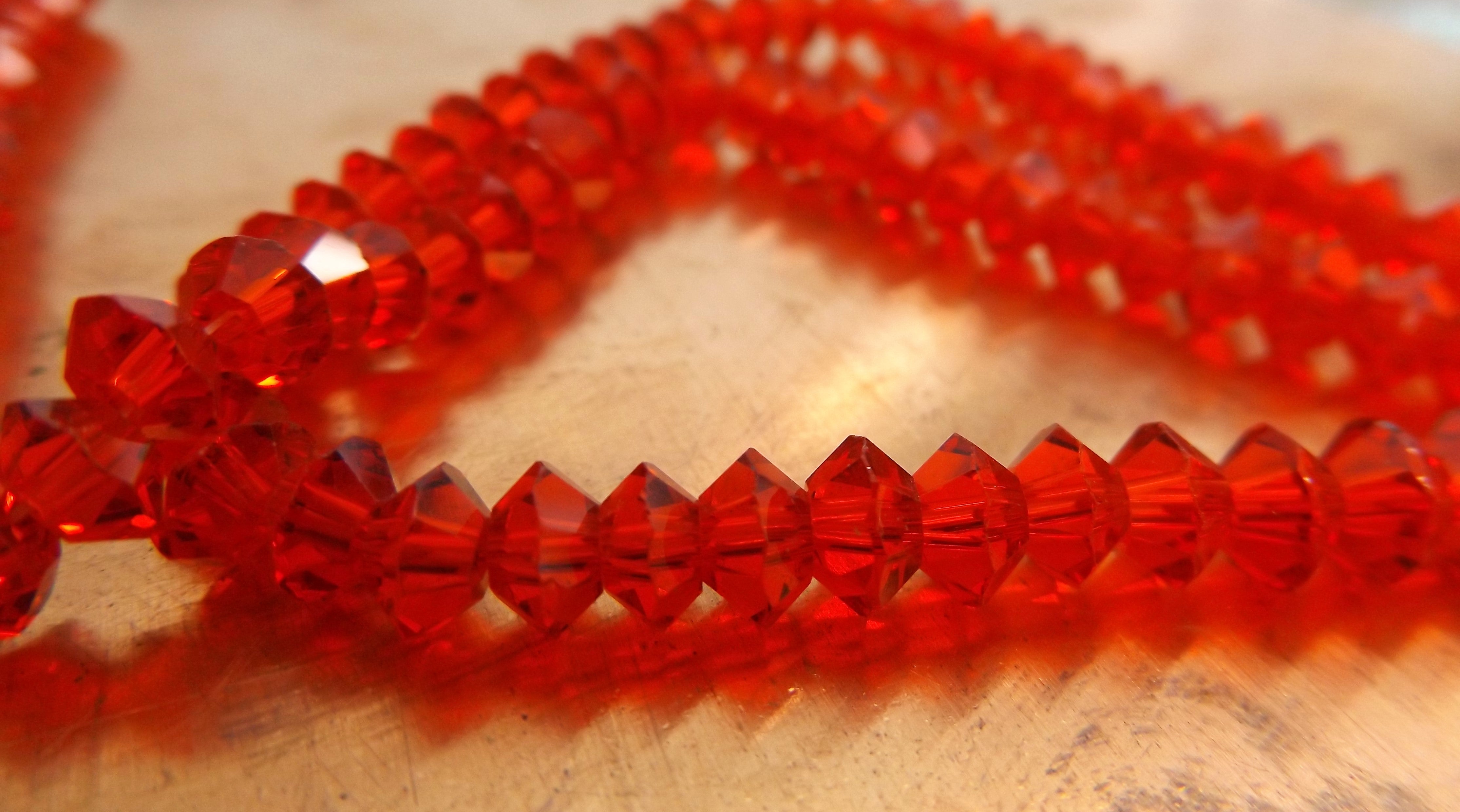 Pancake Bicone (Glass) *Red 6 x 3mm size. (approx 90 beads strand).