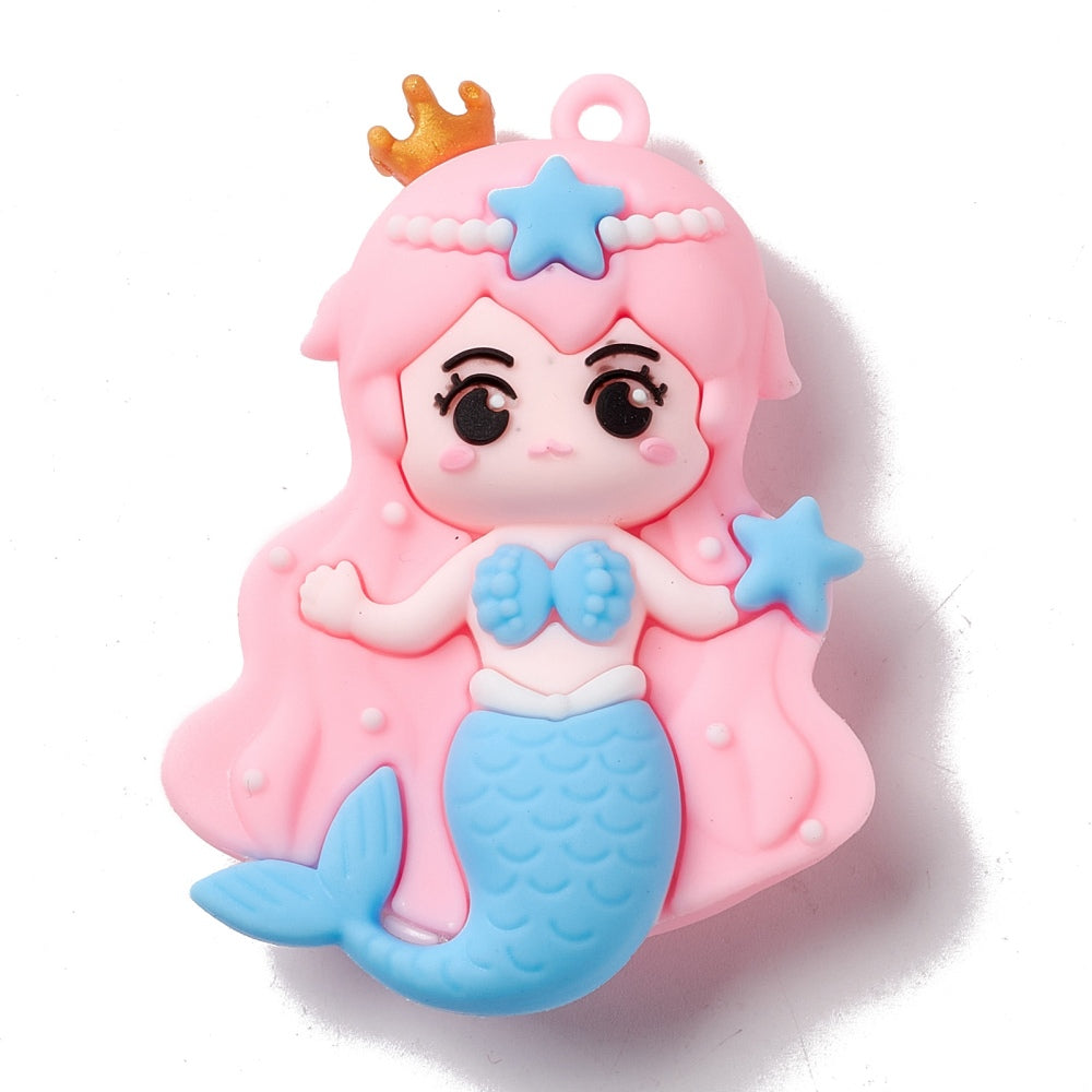 PVC Plastic Cartoon Big Pendants, Mermaid, Assorted Colors- See Drop Down, 57x42x18.5mm, Hole: 3mm. Sold Individually.