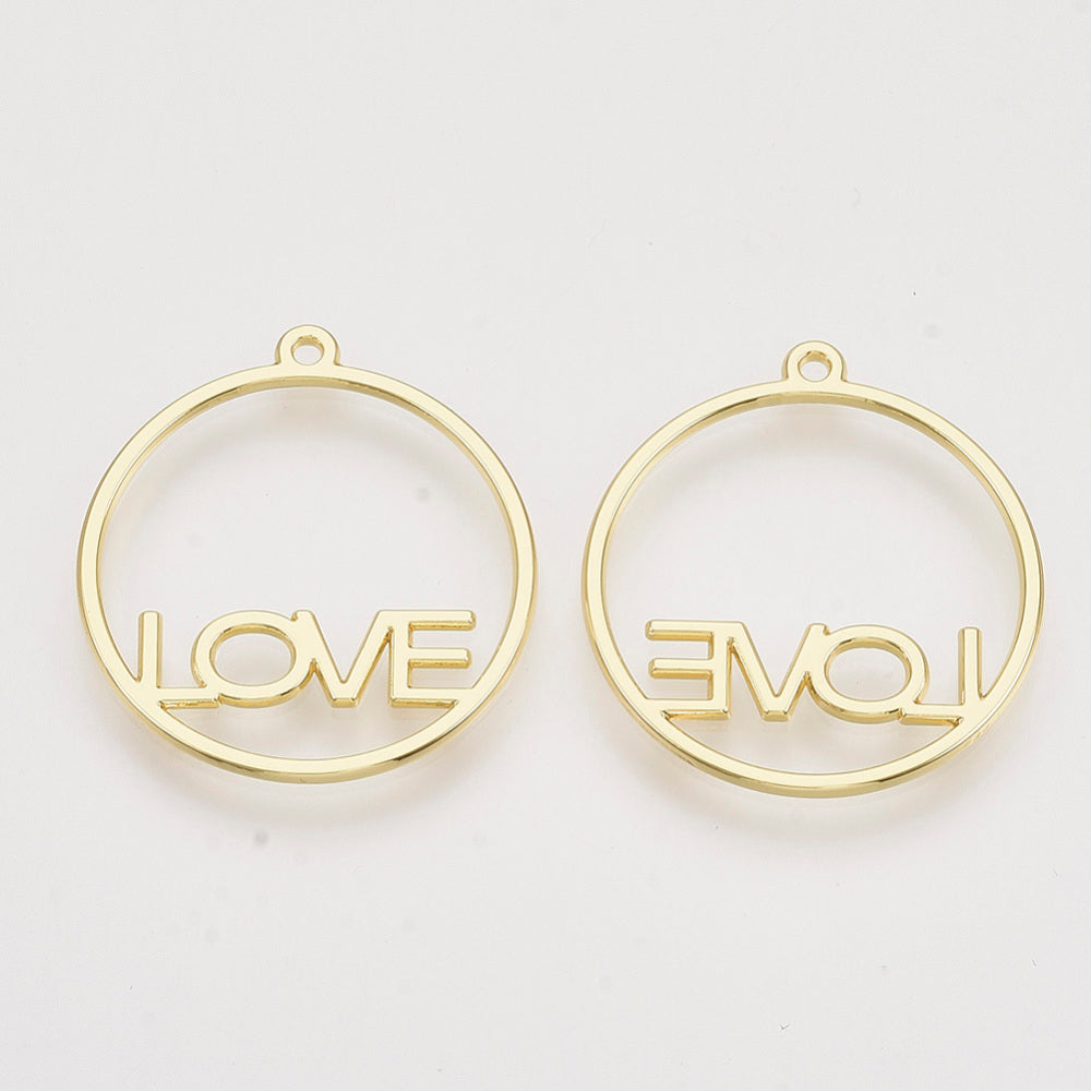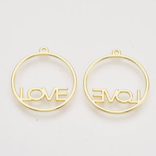 Rack Plating Alloy Open Back Bezel Pendants, Round Ring with Love, Light Gold, 29x26x1.5mm, Hole: 1.5mm (Packed 2)