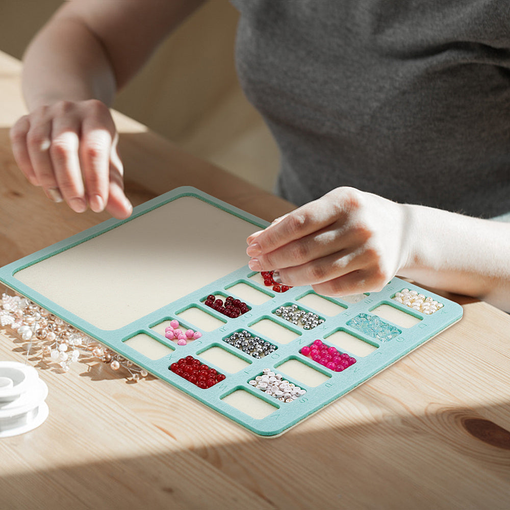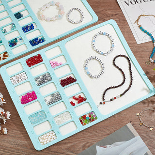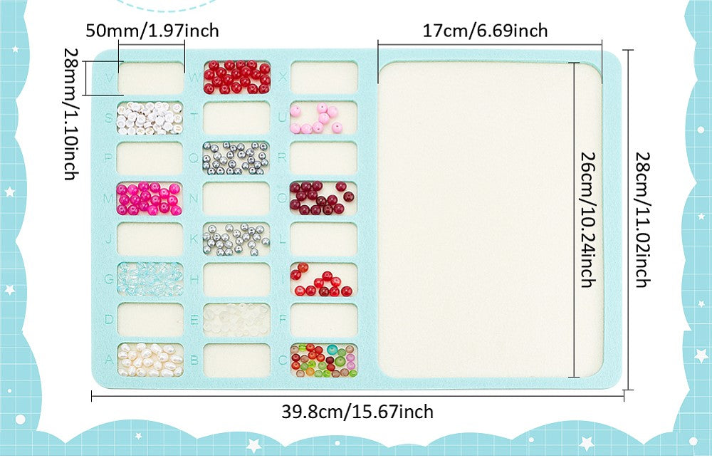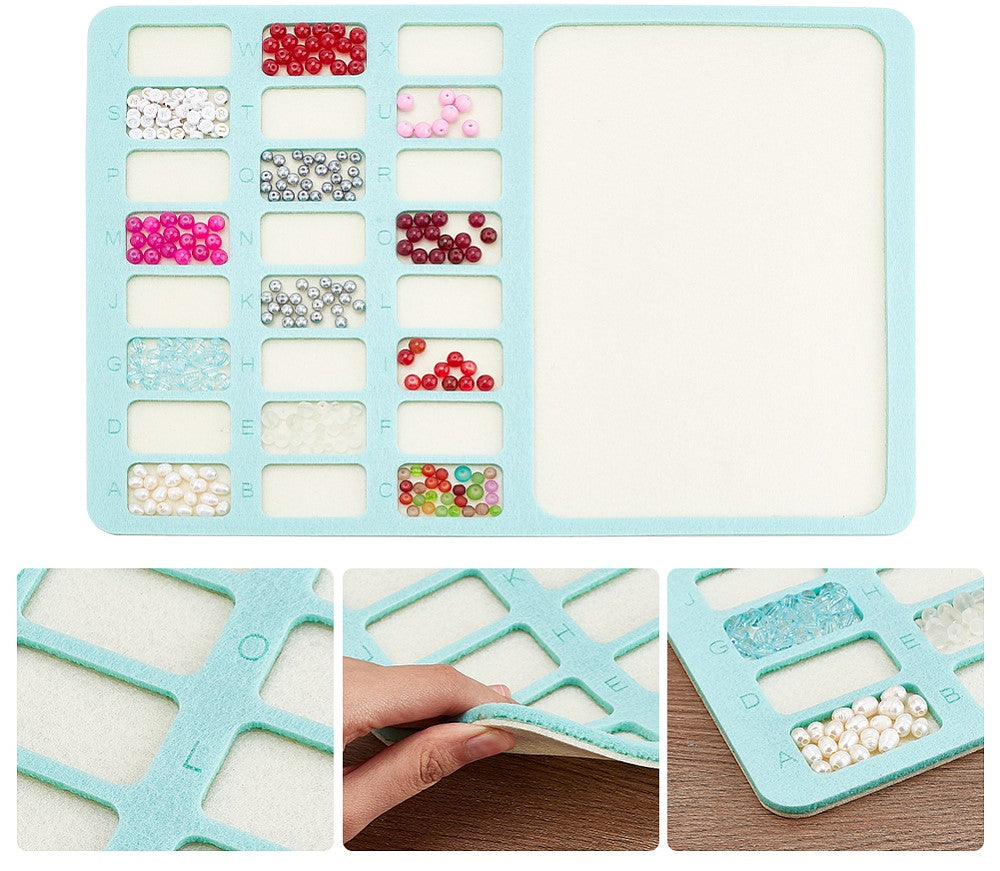 Rectangle Felt Bead Design Board, Green Felt Beading Mat with A-X 24 Small Grids Beads Tray Bead Pad for Art Crafts Jewelry Making Beading Supplies, 15.7x11inch. Sold Individually.
