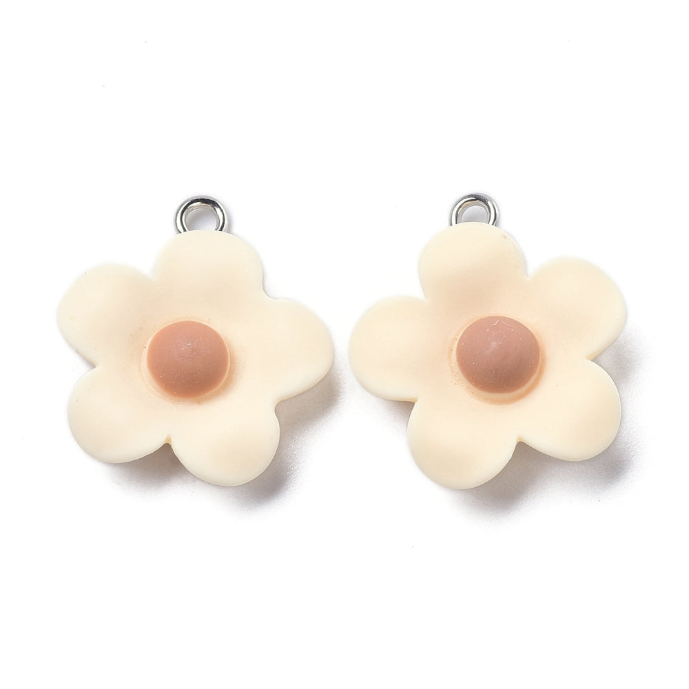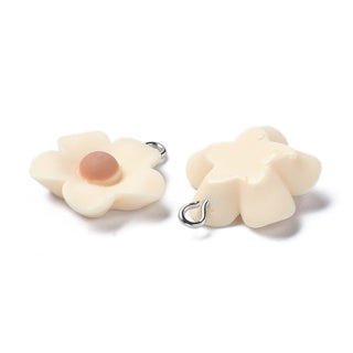 Resin Charm with Iron Loop, Flower, PapayaWhip, 23x21x7mm, Hole: 2mm Sold Individually.