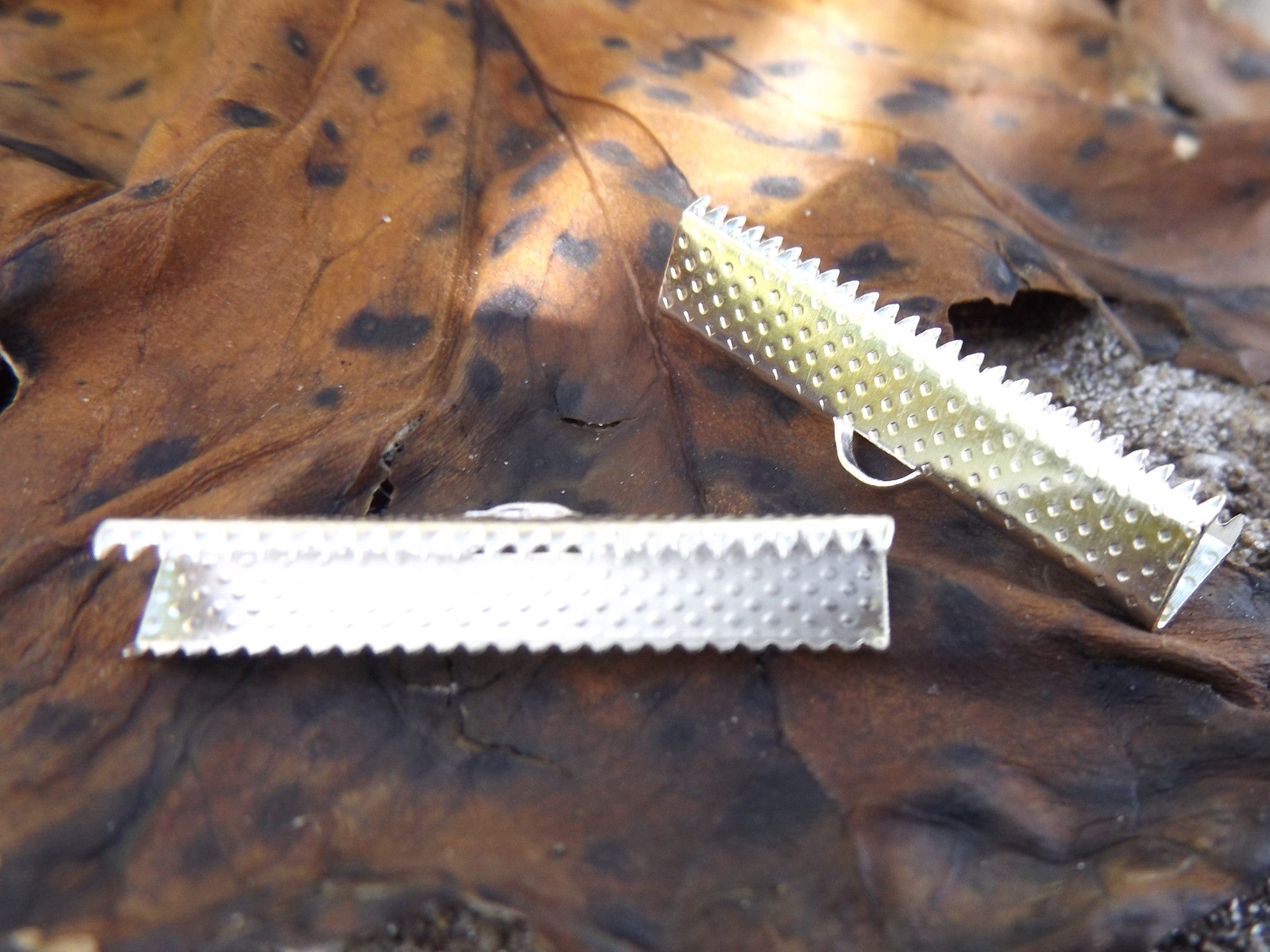 Brass Ribbon Crimp Ends, Rectangle, Silver Color Plated, 7x20mm, Hole: 1x3mm. (Packed 10)