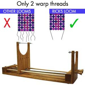 "Unlike traditional looms , which leave you with multiple warp threads to weave into your design, the Ricks beading loom leaves you with only 2 warp threads at the end of your project. Its ergonomic design and adjustable lengths make this an ingenious device which will replace all other Beading looms. Comes with a comprehensive user guide and made of quality Wood. PATENT PROTECTED!"