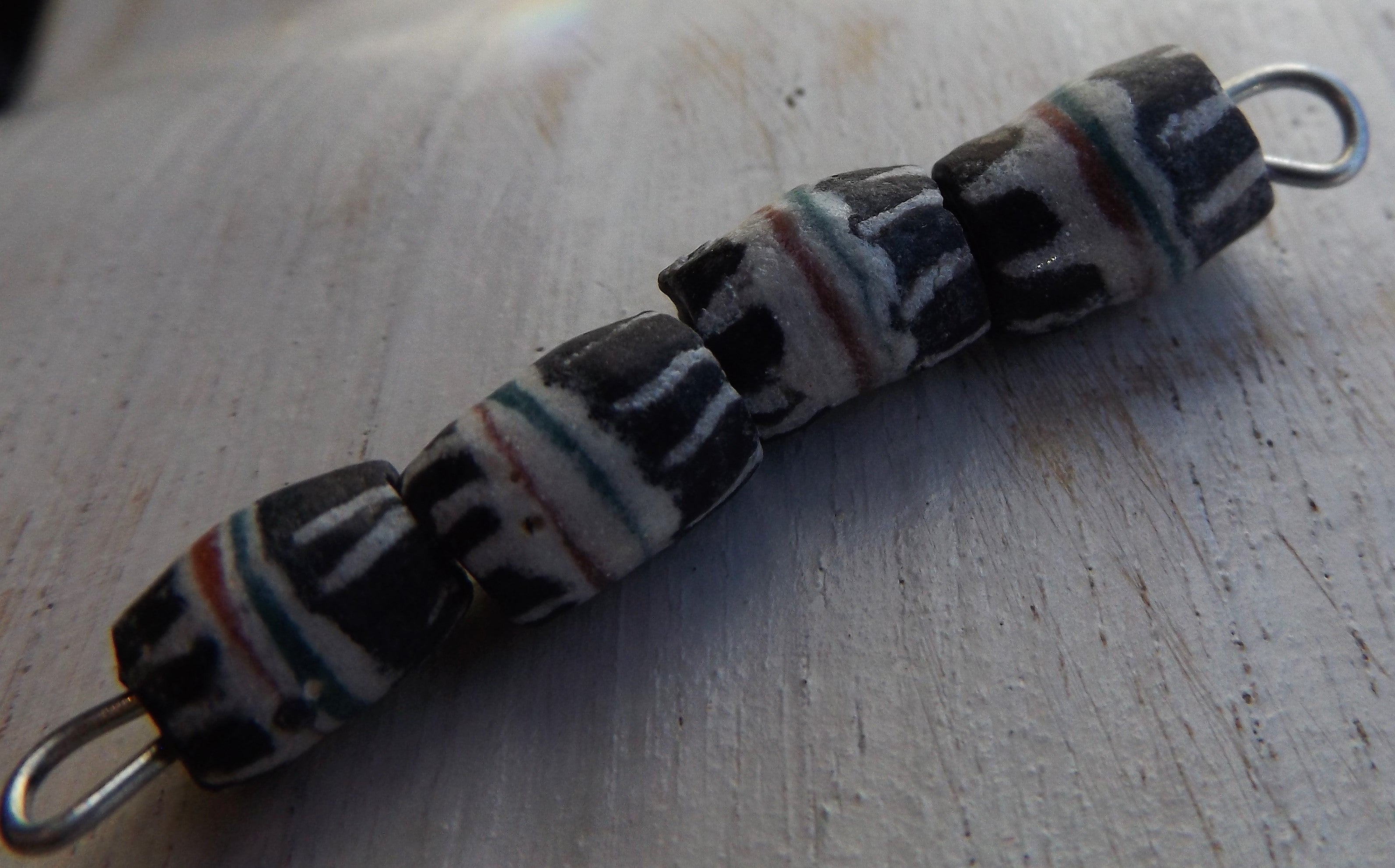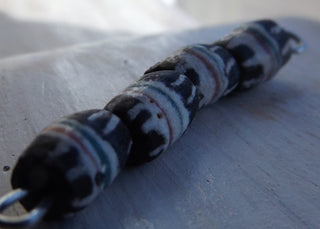 Sand Cast African Recycled Glass (Black with White, Maroon and Blue Accents) *4 Beads