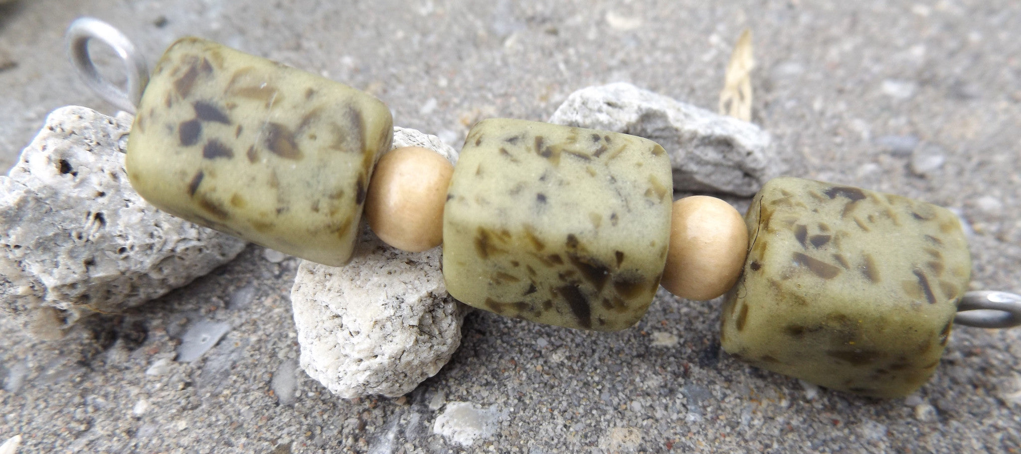 Sand Cast African Recycled Glass (Green Barrel Cube with Green Specks) *3 Beads