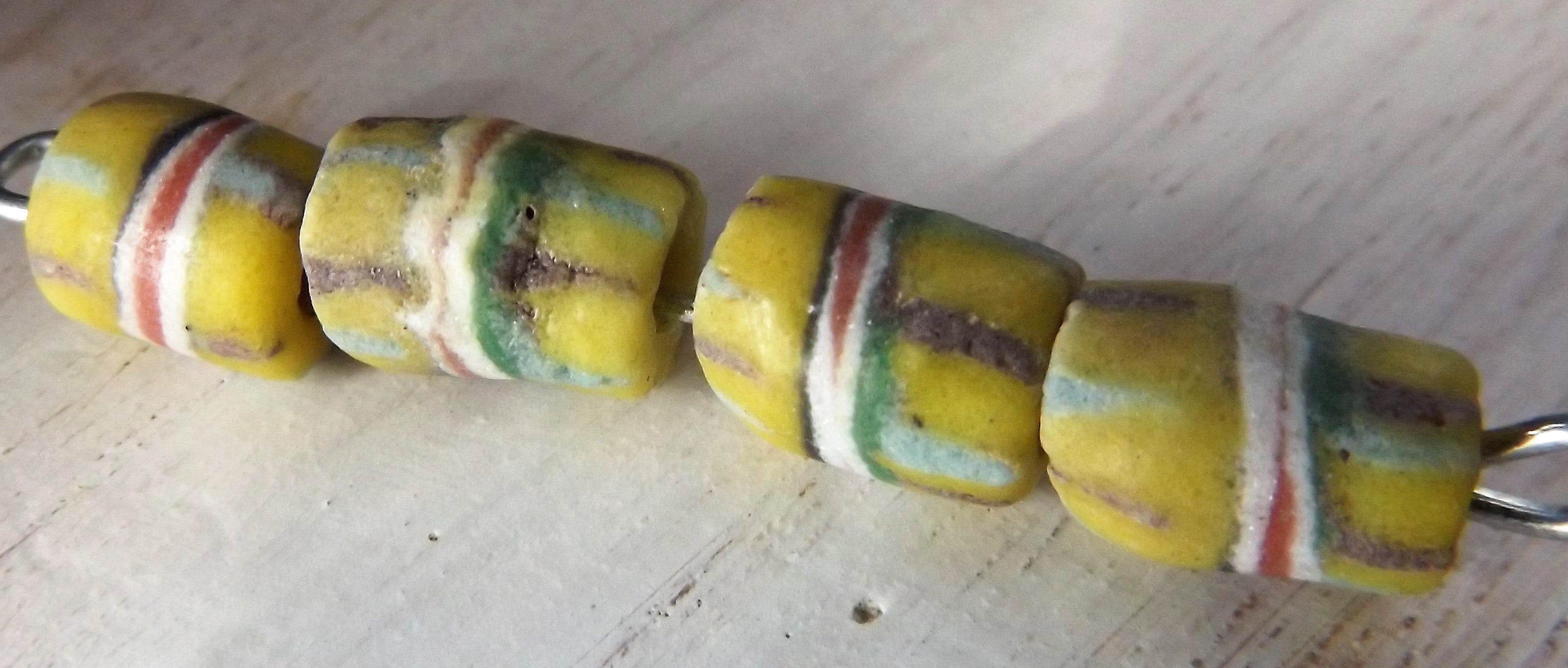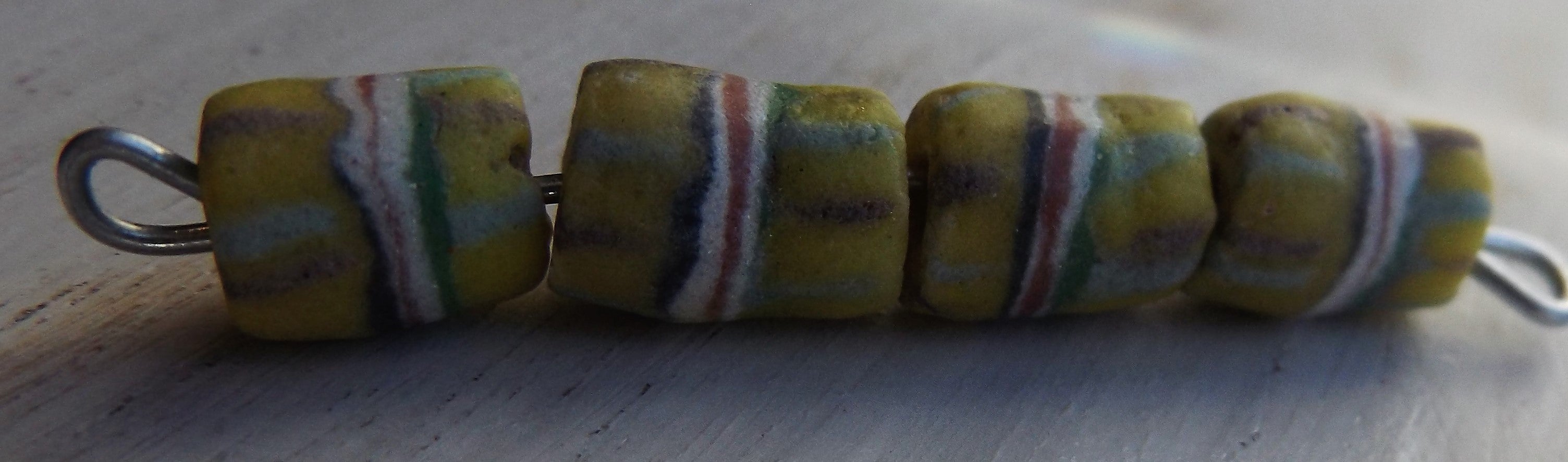 Sand Cast African Recycled Glass (Yellow/Green with Black, Maroon and White Accent) *4 Beads