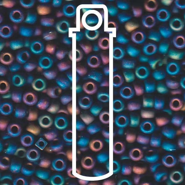 Seed Bead (MIYUKI 6/0) Round. (Matte Black AB) 20gm tube.