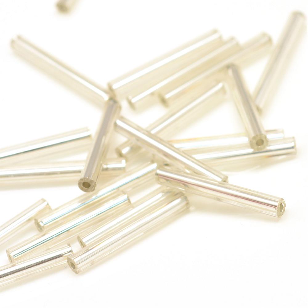 Silver Lined Transparent Glass Bugle Beads, Clear, 20x2.5mm, Hole: 0.5mm. (Approx 15 grams)