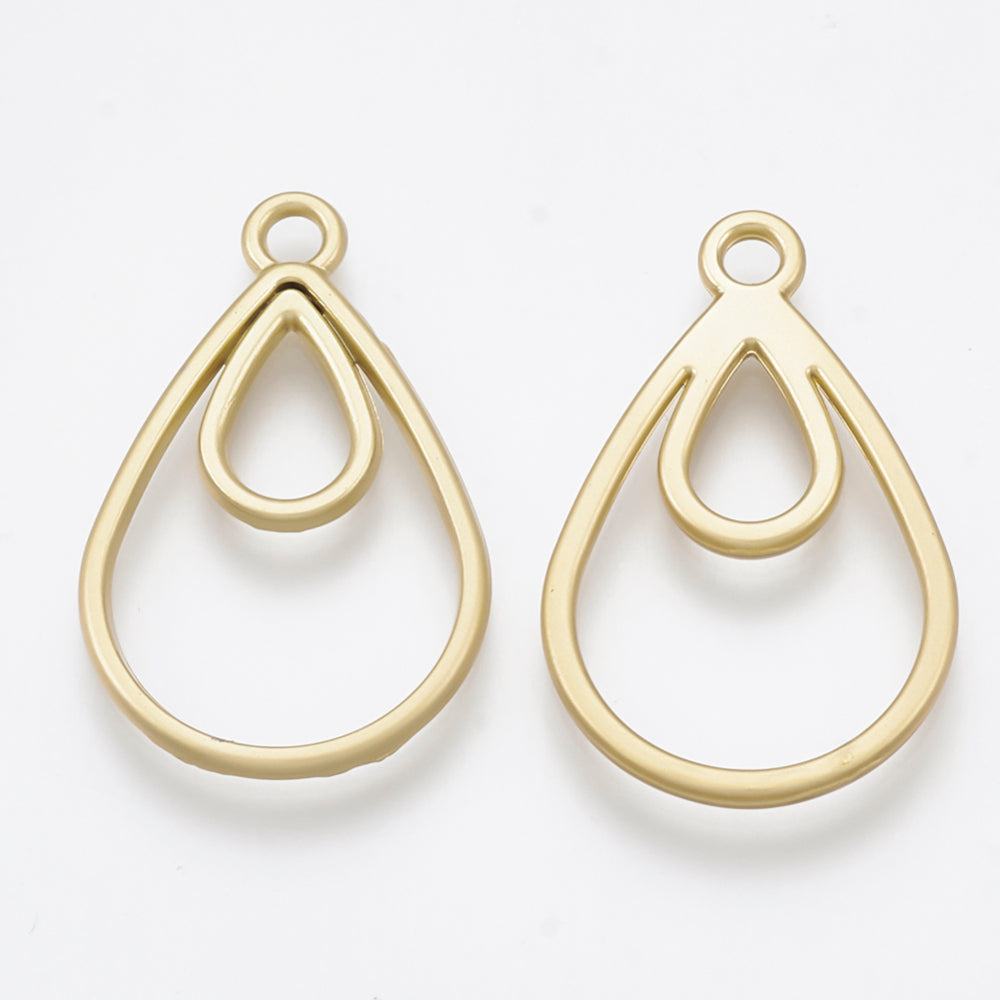 Smooth Surface Alloy Open Back Bezel Pendants, For DIY UV Resin, Epoxy Resin, Pressed Flower Jewelry, teardrop, Matte Gold Color, 24x15.5x1.5mm, Hole: 1.5mm. (Packed 2 )