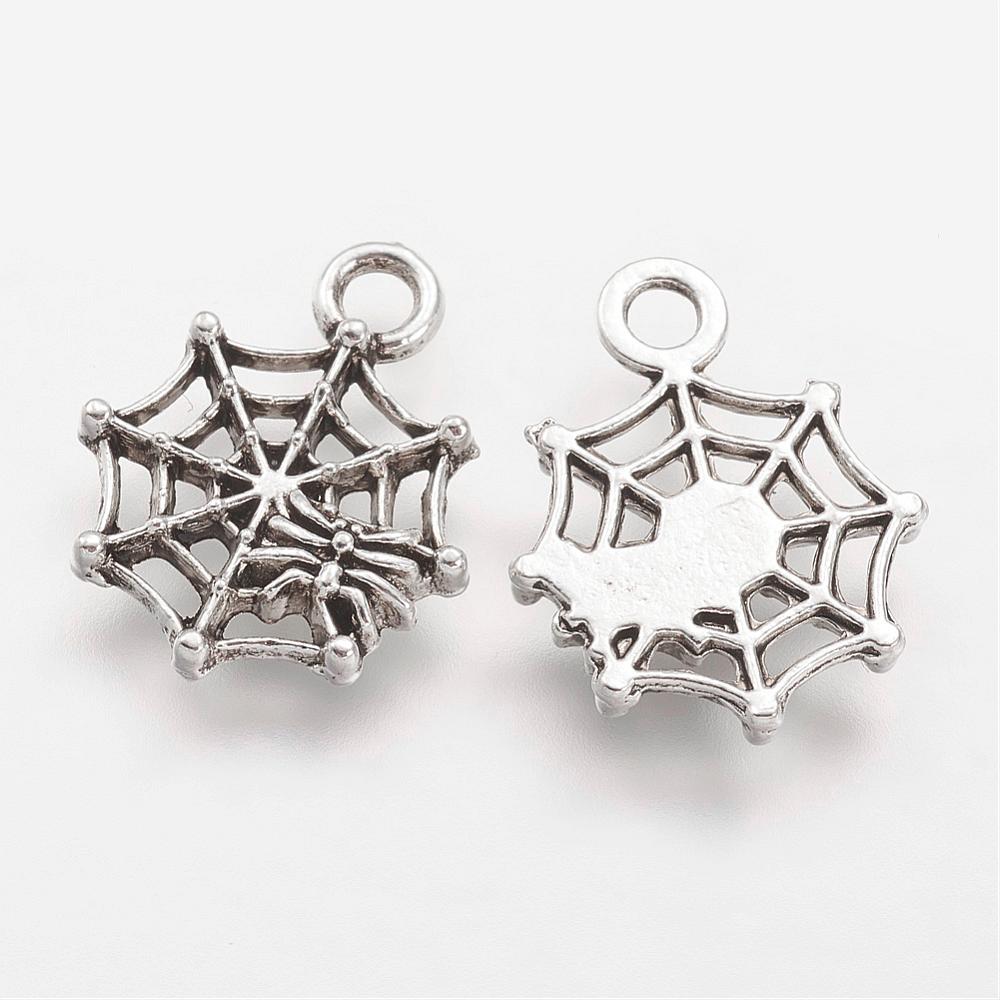 Spider Web Charm. Antique Silver Color Metal, 17x13.5x2mm, Hole: 2mm Sold Individually.