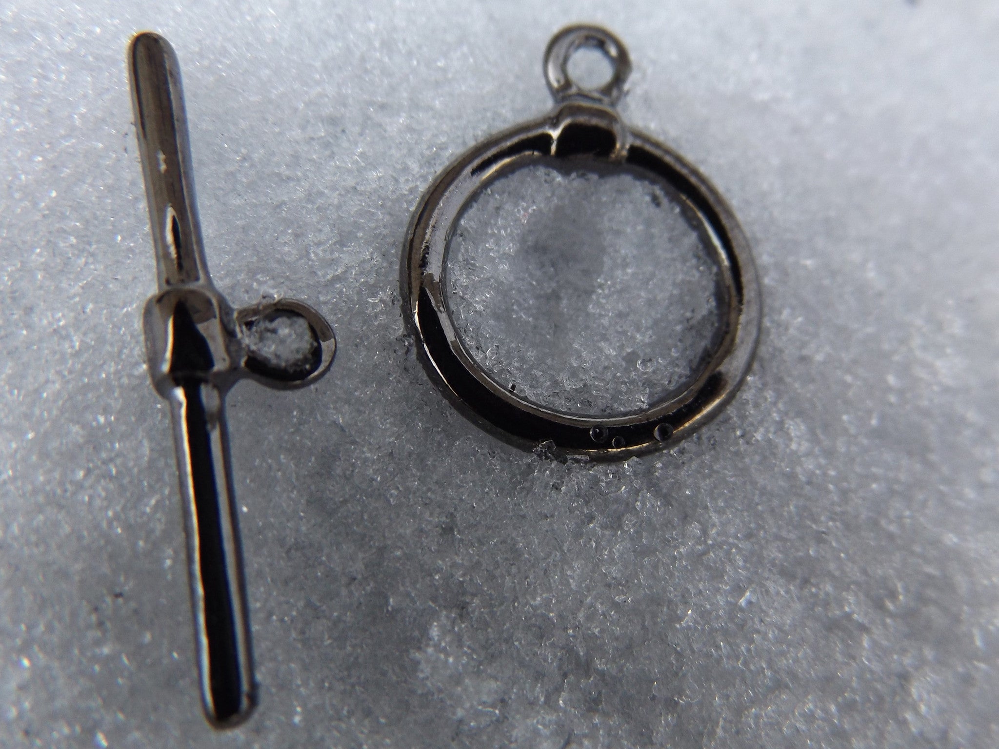 Brass Bar & Ring Toggle Clasps, Donut, Deep Gunmetal Color, Toggle: 19x15x2mm, Tbar: 23x6x2mm, Hole: 1.5mm.  Lead and Nickel Free.