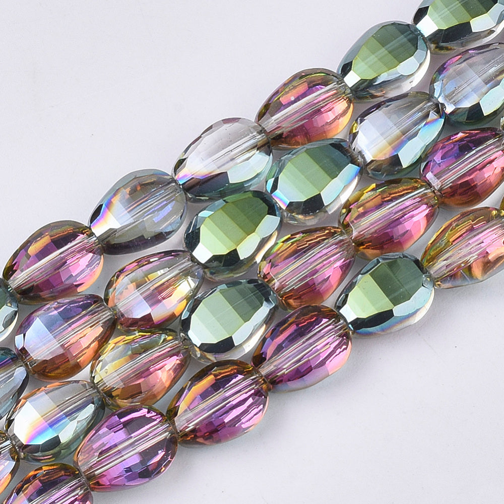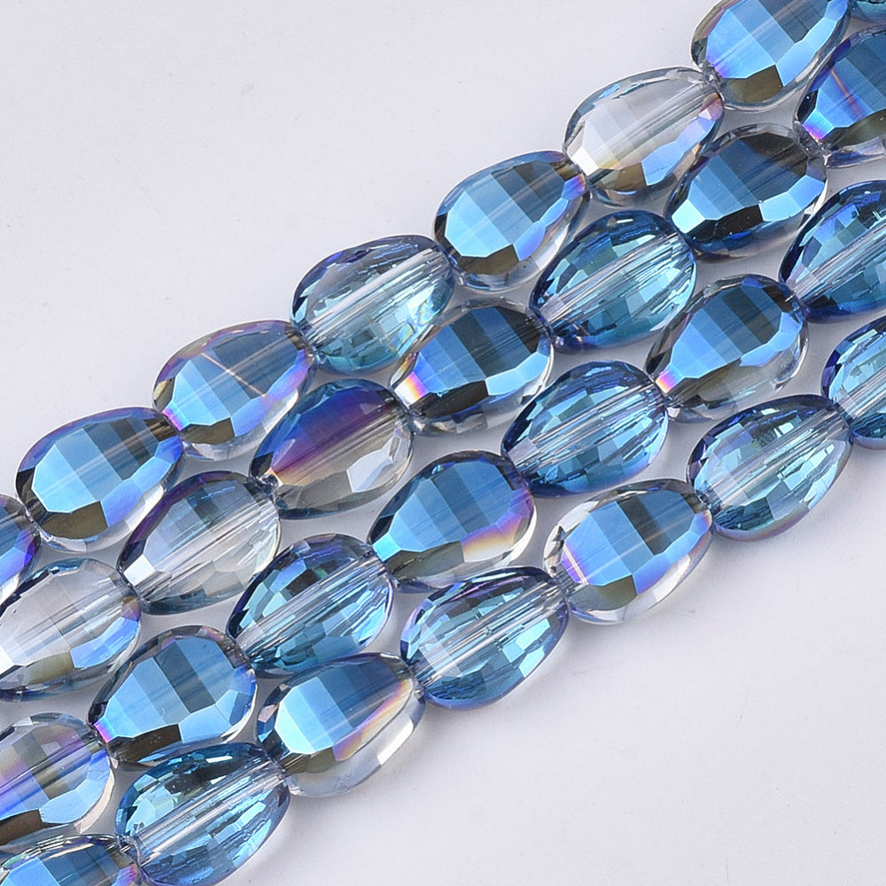 Translucent Electroplate Glass Beads Strands, Half Plated, Faceted, Teardrop, Dodger Blue, 8.5x6x3.5mm, Hole: 1mm, about 80pcs/Strand, 26.38 inch(67cm)