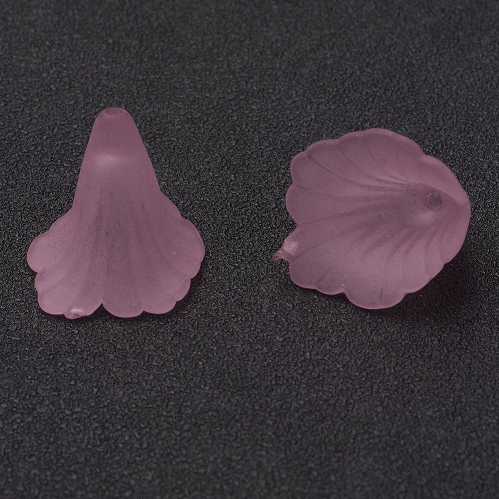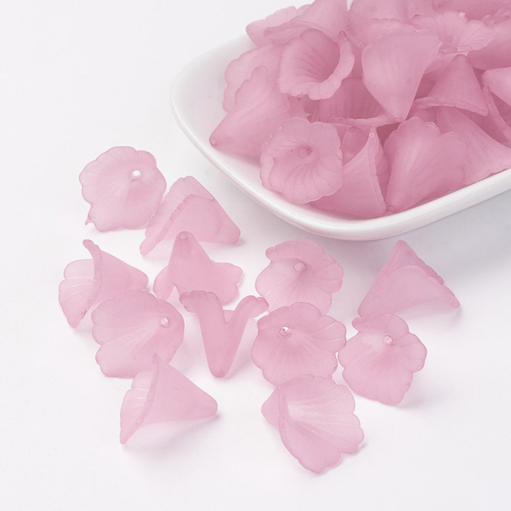 Transparent Acrylic Bead Caps, Trumpet Flower Beads, Frosted, Flower, Pink, 19~20x18~19x17mm, Hole: 1.5mm. (Packed 10)